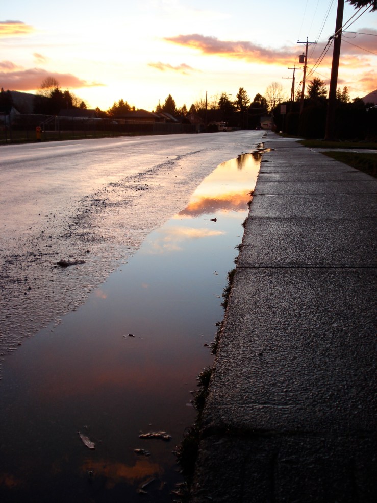 Oh, and I took this picture Wednesday evening. The shot was Peter’s idea but I was the one who got my feet wet standing in a puddle. The sky was unbelievable that night.