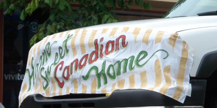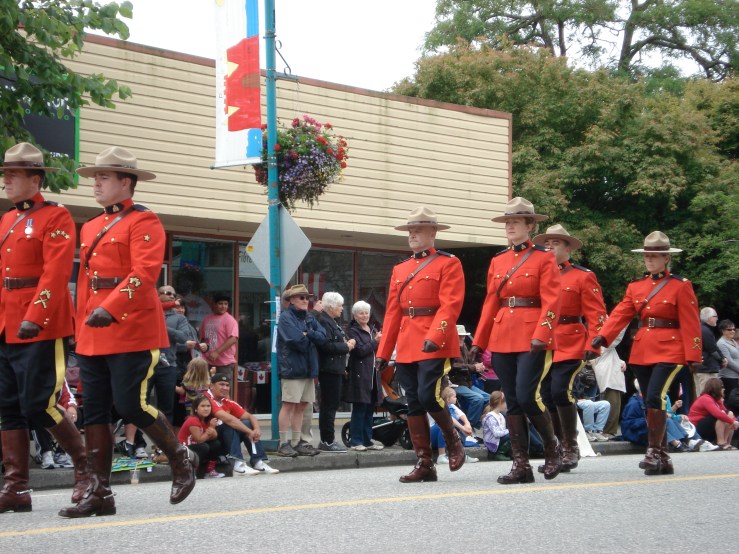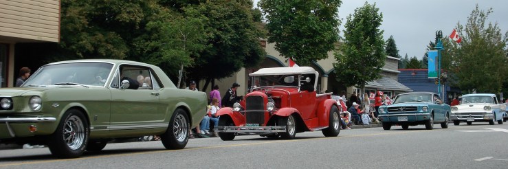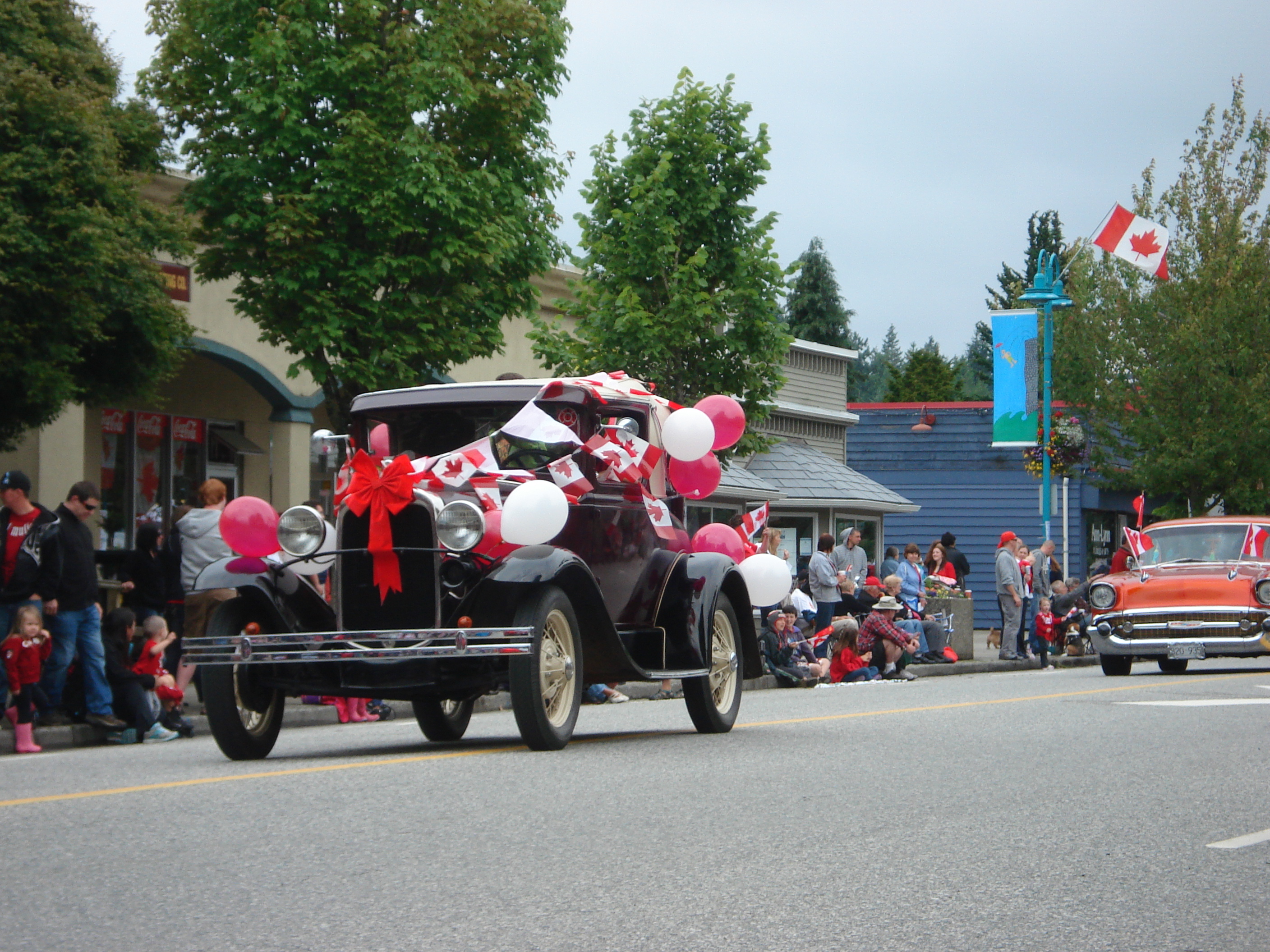 It wasn’t sunny for the parade yesterday but it didn’t rain. This was my 2nd Sechelt Canada Day Parade. It begins with locals kids riding their bikes, decorated with flags and red and white streamers. Kids on tricycles are flagged by jogging dads.