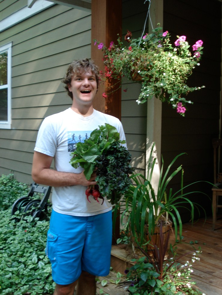 We came home with fresh kale and beets. We made kale chips for the first time – pretty good but I think I’ll tweak the recipe a bit next time. Anybody out there got a foolproof one? The beets included surprisingly sweet leaves. Don’t you love when things that are good for you also taste delicious?