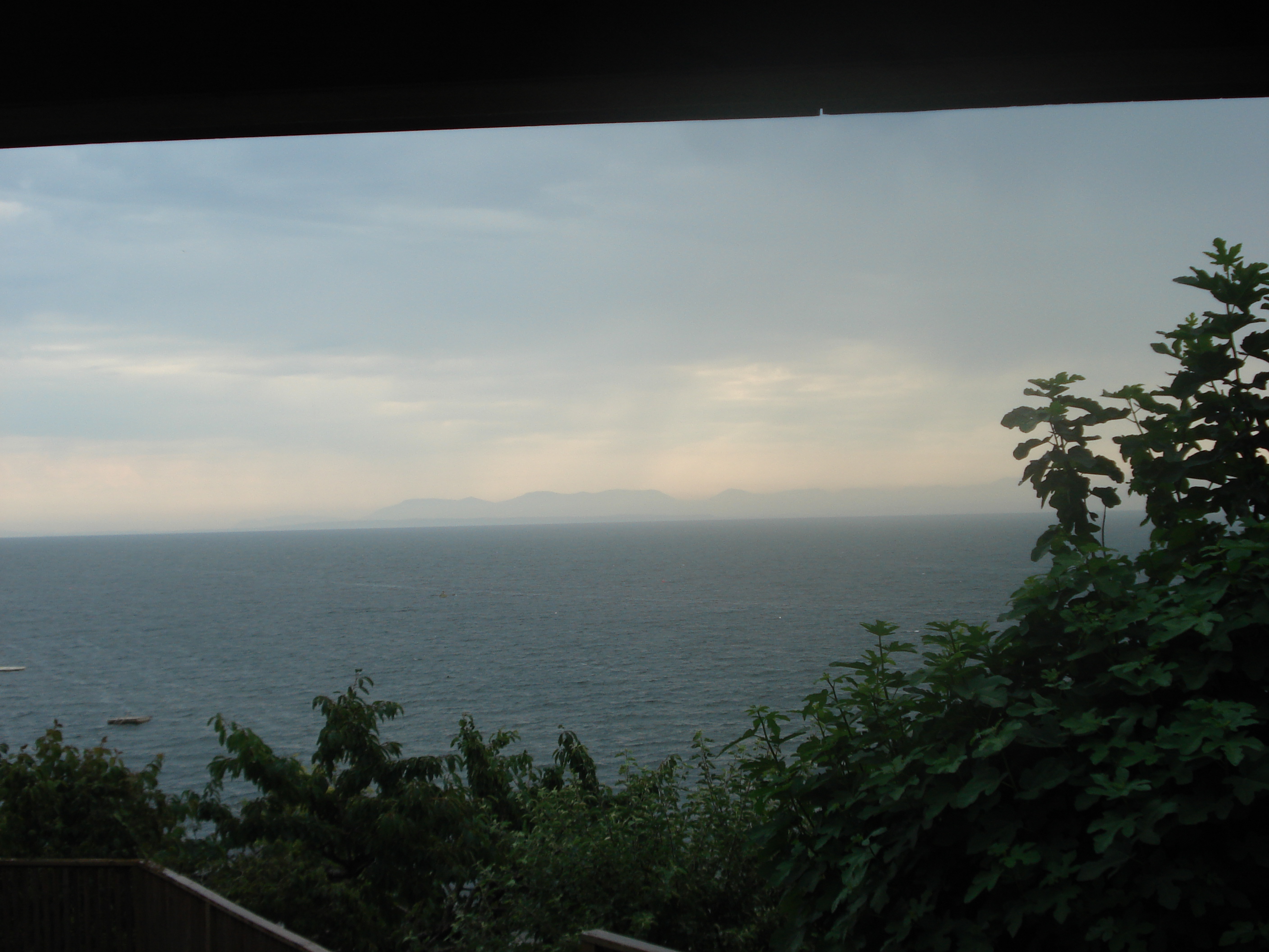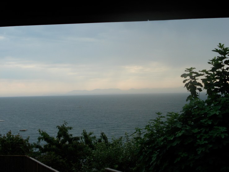 Our view these days. (Also – the calm before the crazy storm last night!)