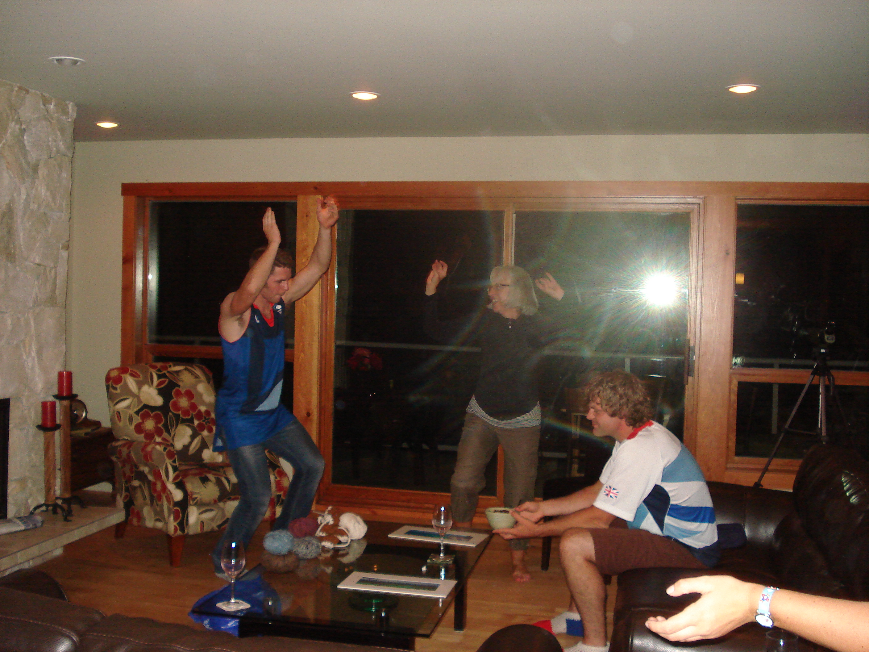 Friday night. Ostensibly, we were practicing our dance moves before Saturday. Peter is eating ice cream.