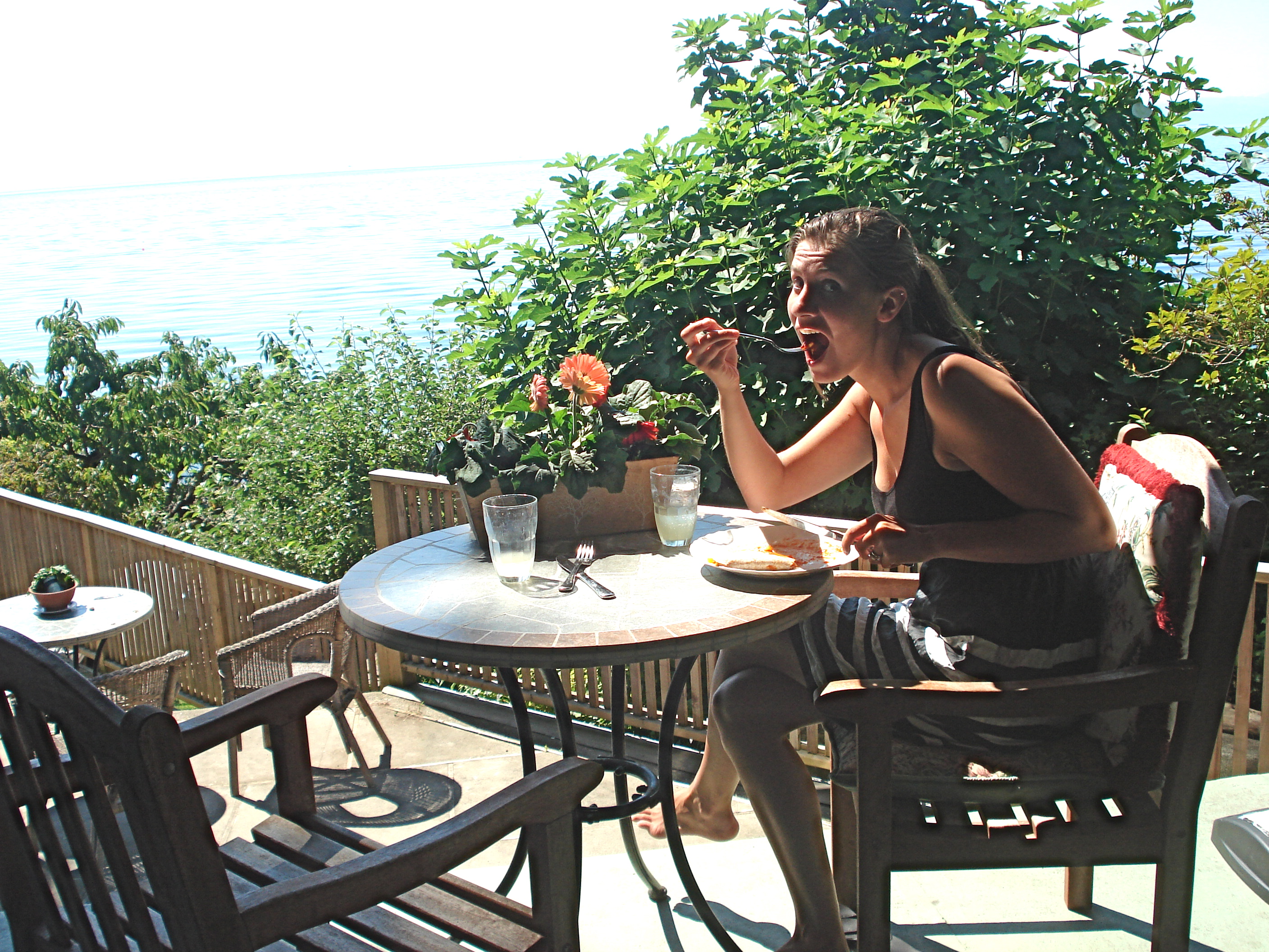 Lunch on the deck after a kayak and a swim. Friday morning was gorgeous out and the water was calm. We kayaked over to a nearby sandbar where we hopped out for a swim. While getting back into our kayaks we spotted a group of seals a little ways out so we paddled over to them. Paddling as silently as I could, I was trying to get closer when I heard a “huff” to my left, turned and saw a seal about five feet away staring at me. Awesome!