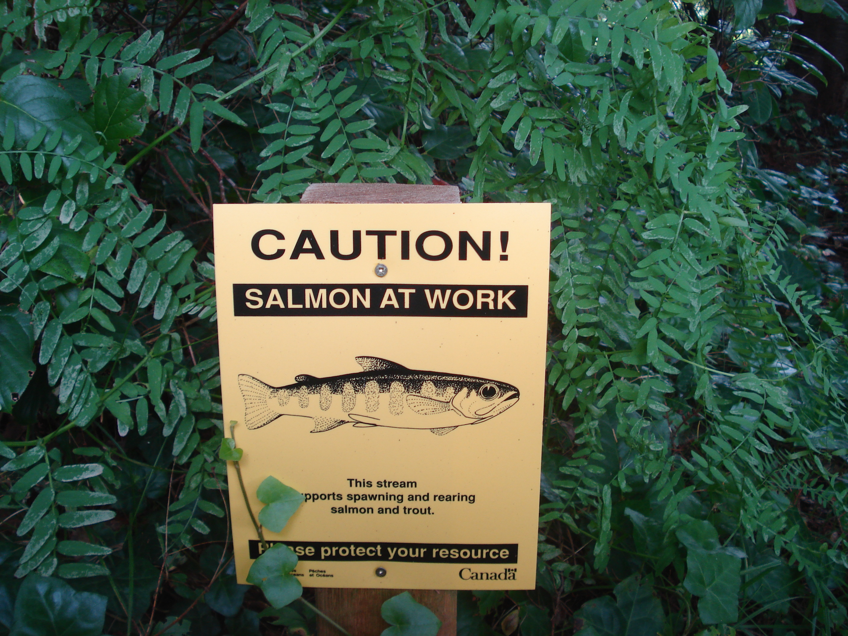 This sign made me laugh. I know salmon spawning and migration is serious (I think everyone who’s gone to elementary school in B.C. knows about this) but this is cheesy and funny.