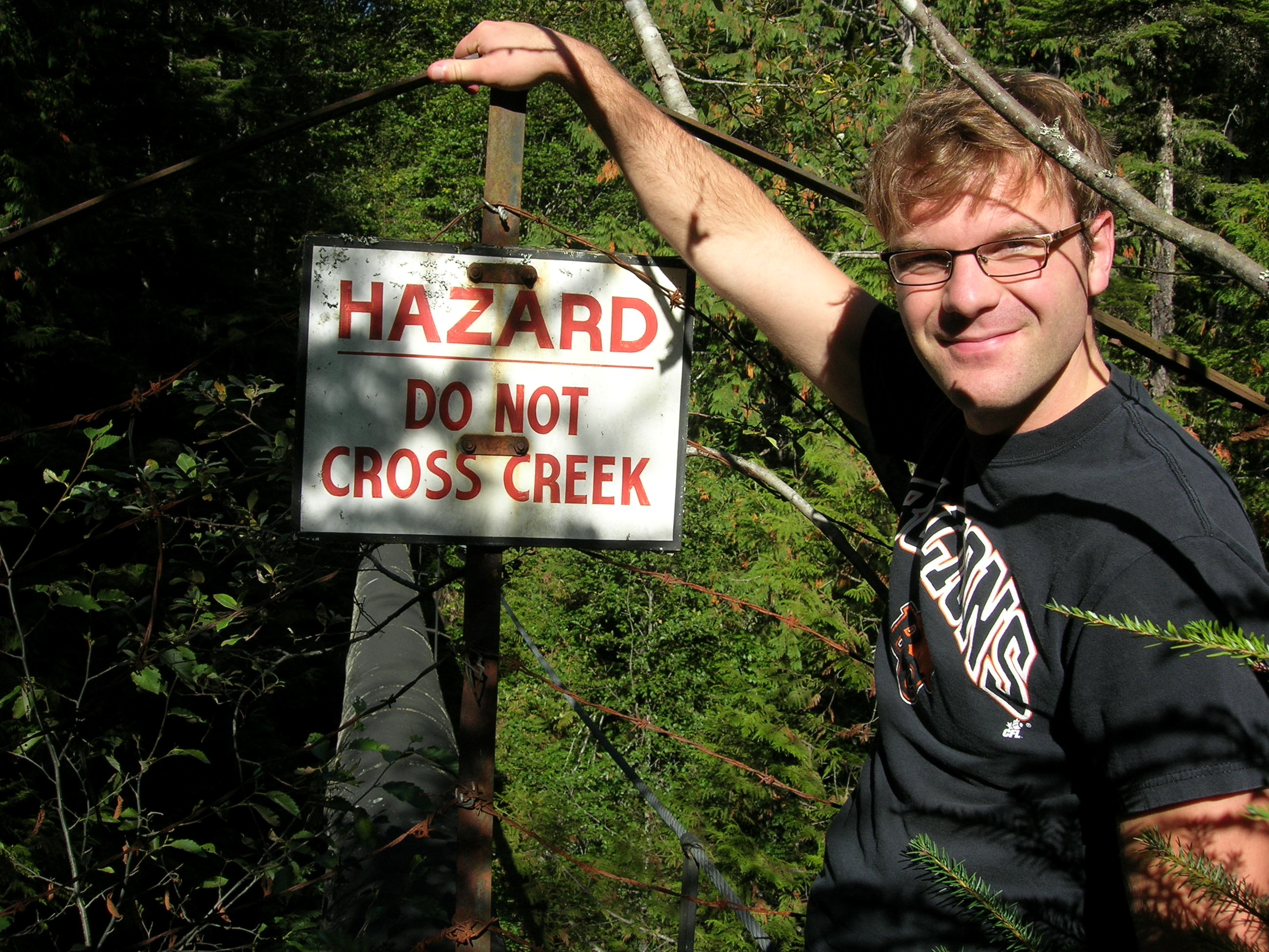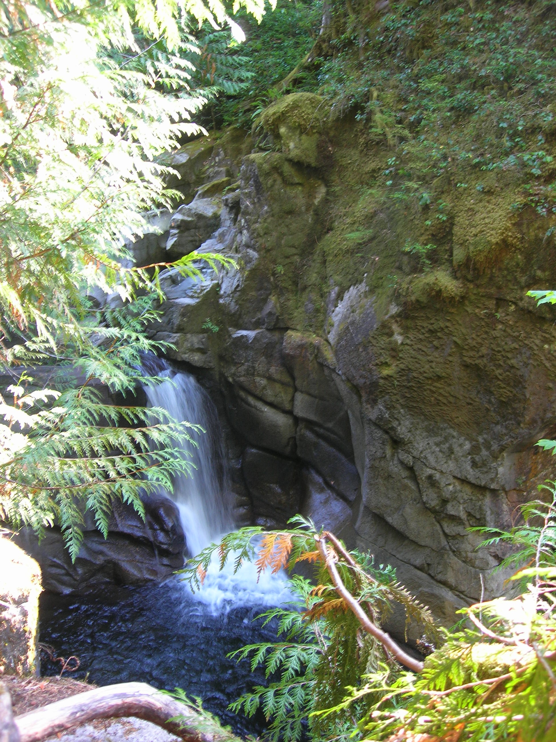 The first time I did this hike Peter and I brought along his family’s dog, Maggie. In the picture above Peter is standing on a bridge with a metal grating under his feet. Maggie positively did not want to walk on the metal grating. In fairness to her, when you look down and see the rushing water, it is a little dizzying. When we started to cross ahead of her she whined like crazy. She simply could not stop looking down. We tried tugging her across and she went a little ways, legs splayed and walking like she was drunk, until she turned around. Finally, Peter had to carry her. It was my funniest moment ever with a sweet dog and Pete and I still frequently laugh about it.