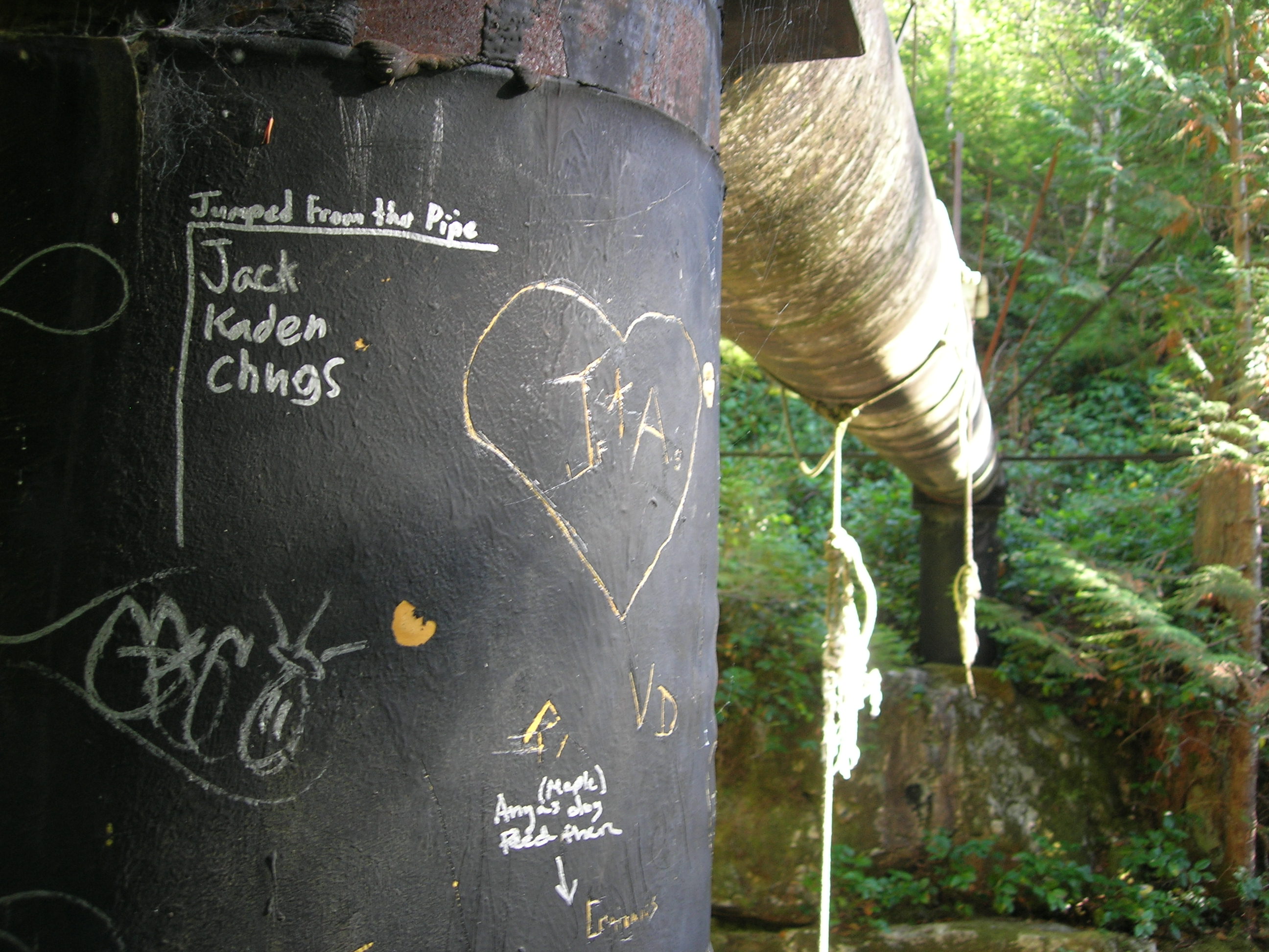 Graffiti and a rope swing (It kind of looks like a noose in some of my photos but it wasn’t.)