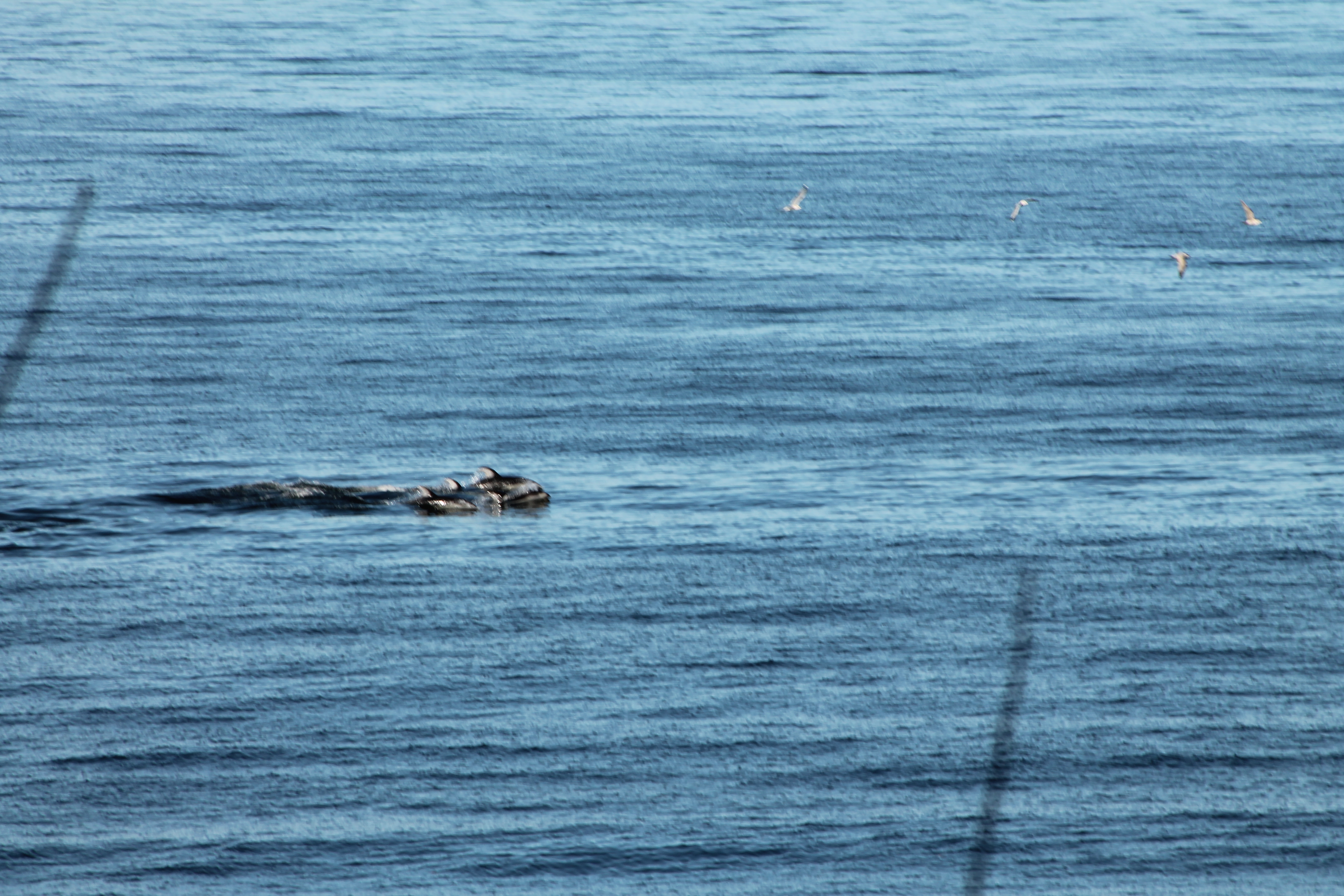 As we were getting ready for church Sunday morning I hear my brother-in-law yelling, “Porpoises! There’s porpoises out front!” and we all rushed to the front windows. (Yes, we live in the same town as my in-laws and yes, we stayed the weekend with them for an Easter sleepover!)