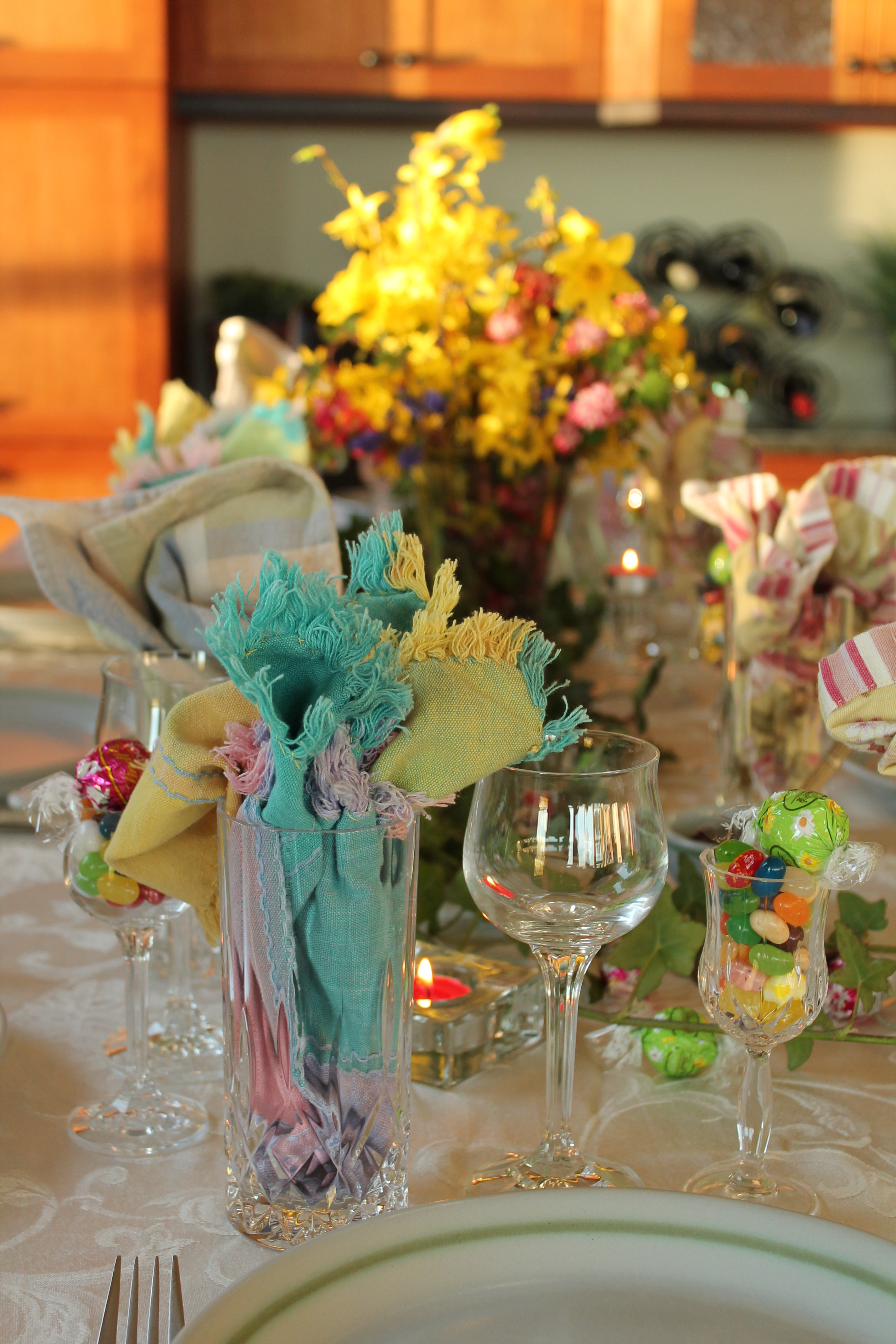 What a warm, sunny, happy Easter! I love that last photo with the napkins and flowers. Cute!