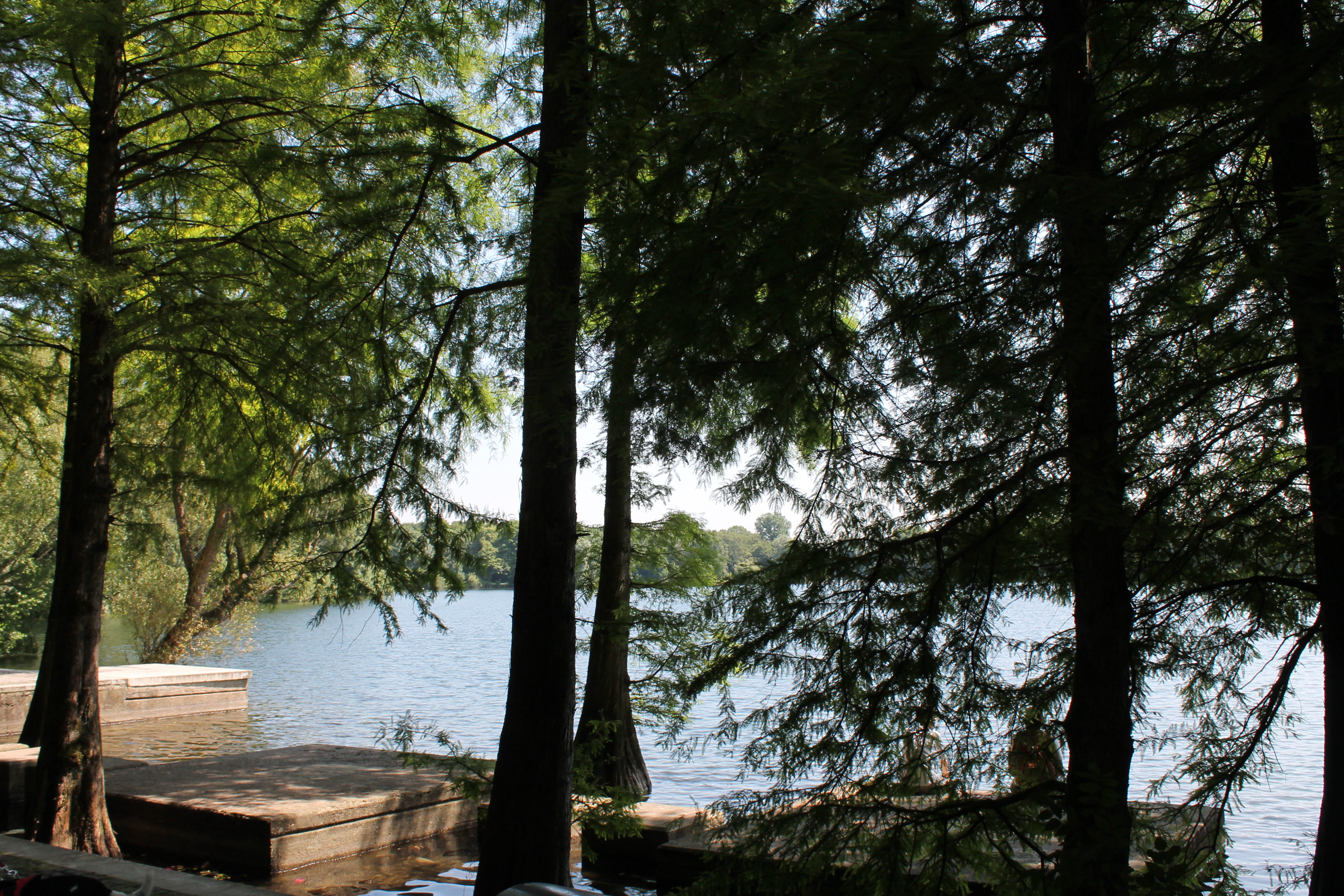 Thomas and Claudia’s house is long and narrow with a large yard on a quiet, cobblestone street. The houses were all built around the same time, in the 1930s, though many have been added to since. Claudia fed us dinner in the backyard – quiche, cheese, bread, wine. They took us for a walk in the park near their house; trails around a number of small lakes where people sail  and swim.