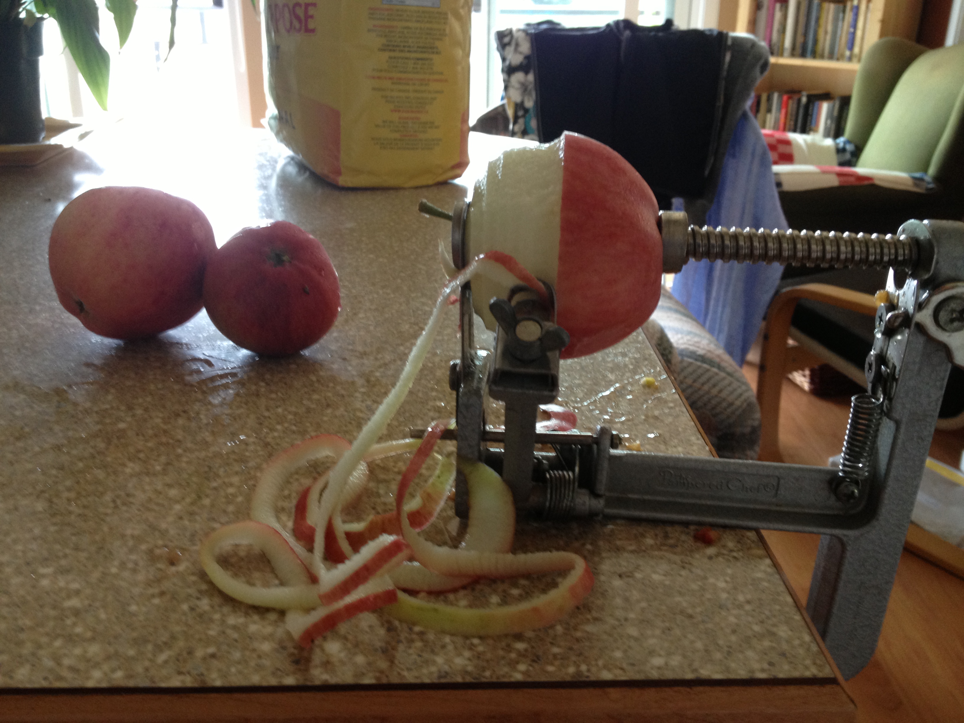 3. Picking apples from our tree and baking with them. (Pictured: using one of my favourite thrift store finds!)