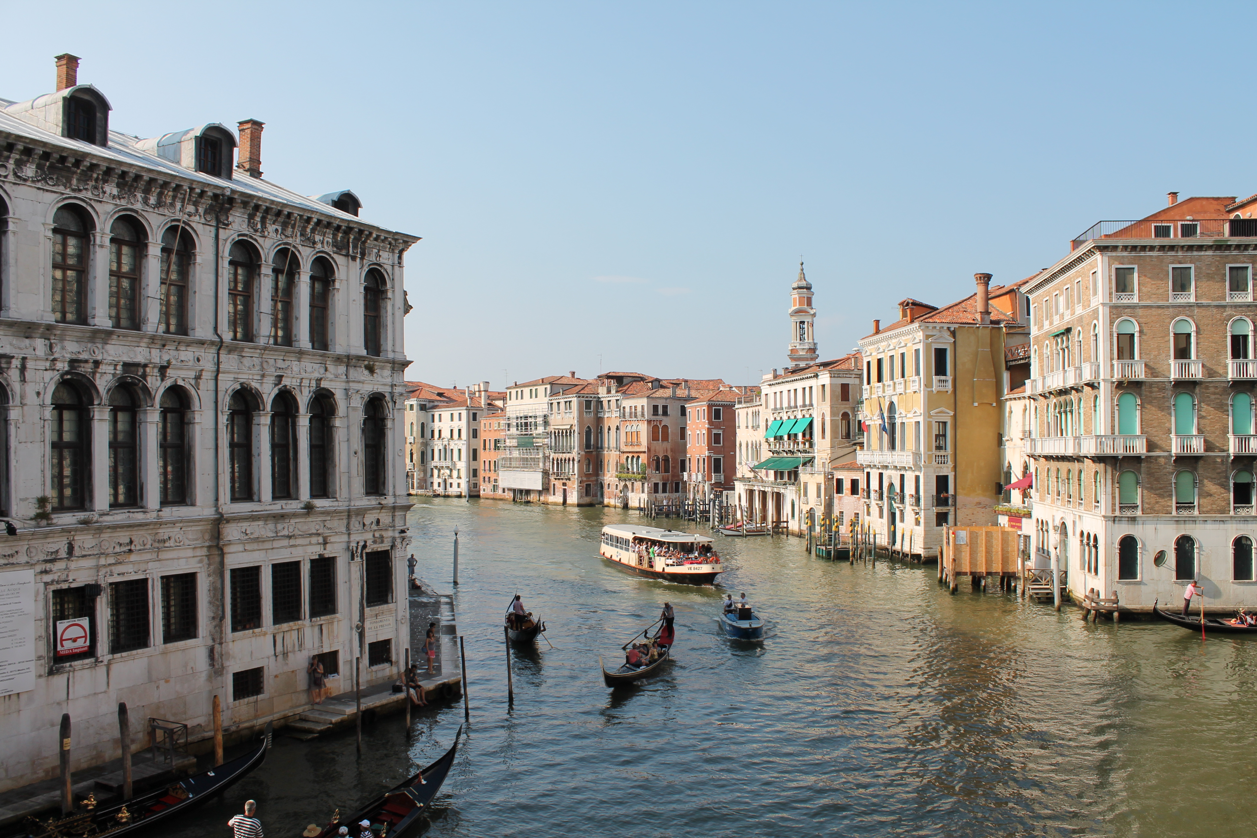 Peter and I made our way straight to the vaporetto, having discussed our action plan on the train already. (Standing around a train station looking at a map signals you out as a target.) After some confusion over which vaporetto (water taxi) went where, we were able to figure out the automated ticket machines. As far as we could ever tell, the numbers assigned to the vaporettos were completely at random but we wanted to travel the route that would take us down the Grande Canal and to San Marco.