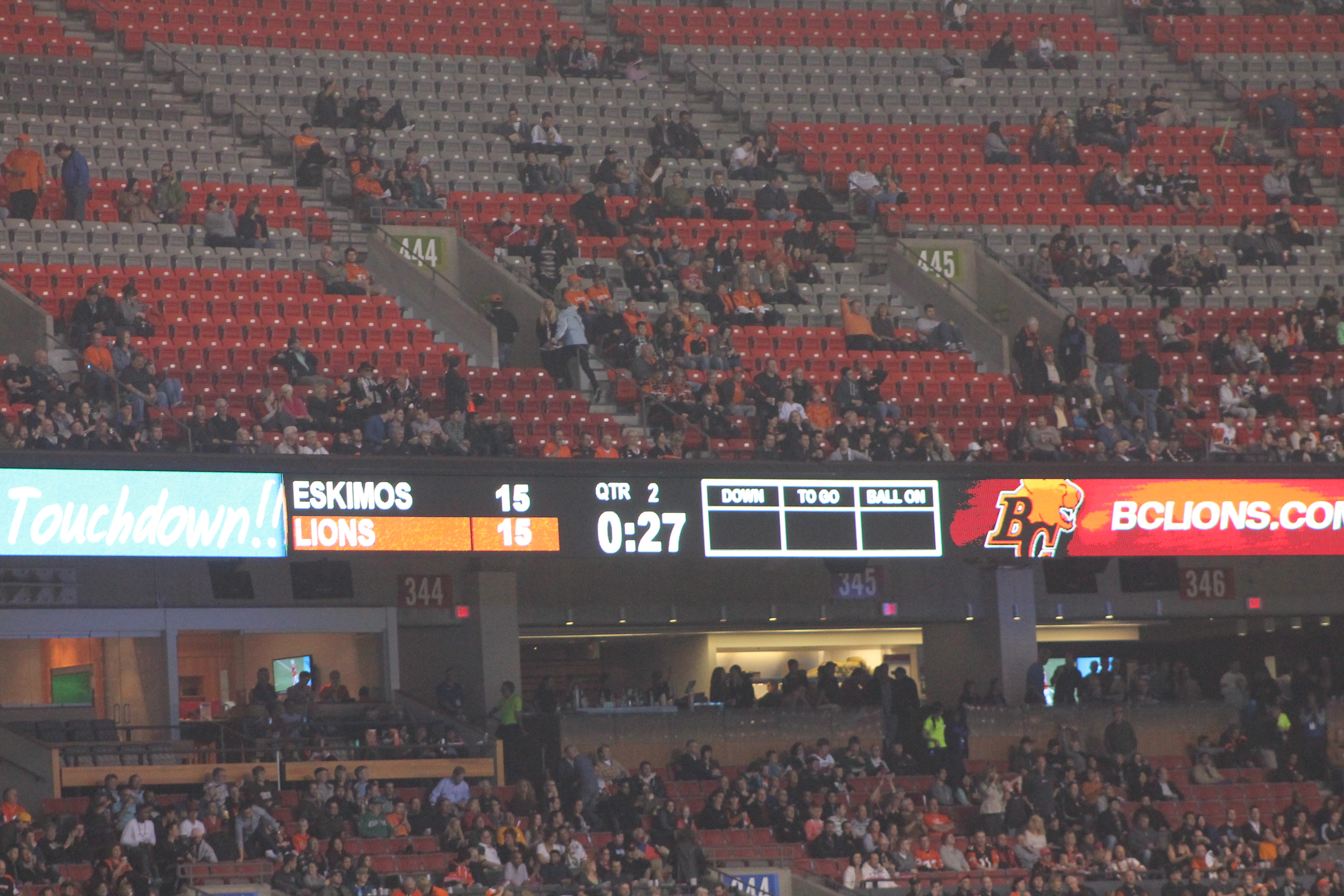 (Also, I would like to mention that the Lions always win when I’m there. Moreover, when I went to my previous games in 2000 and 2011, they went on to win the Grey Cup. So their odds are looking pretty good this year.)