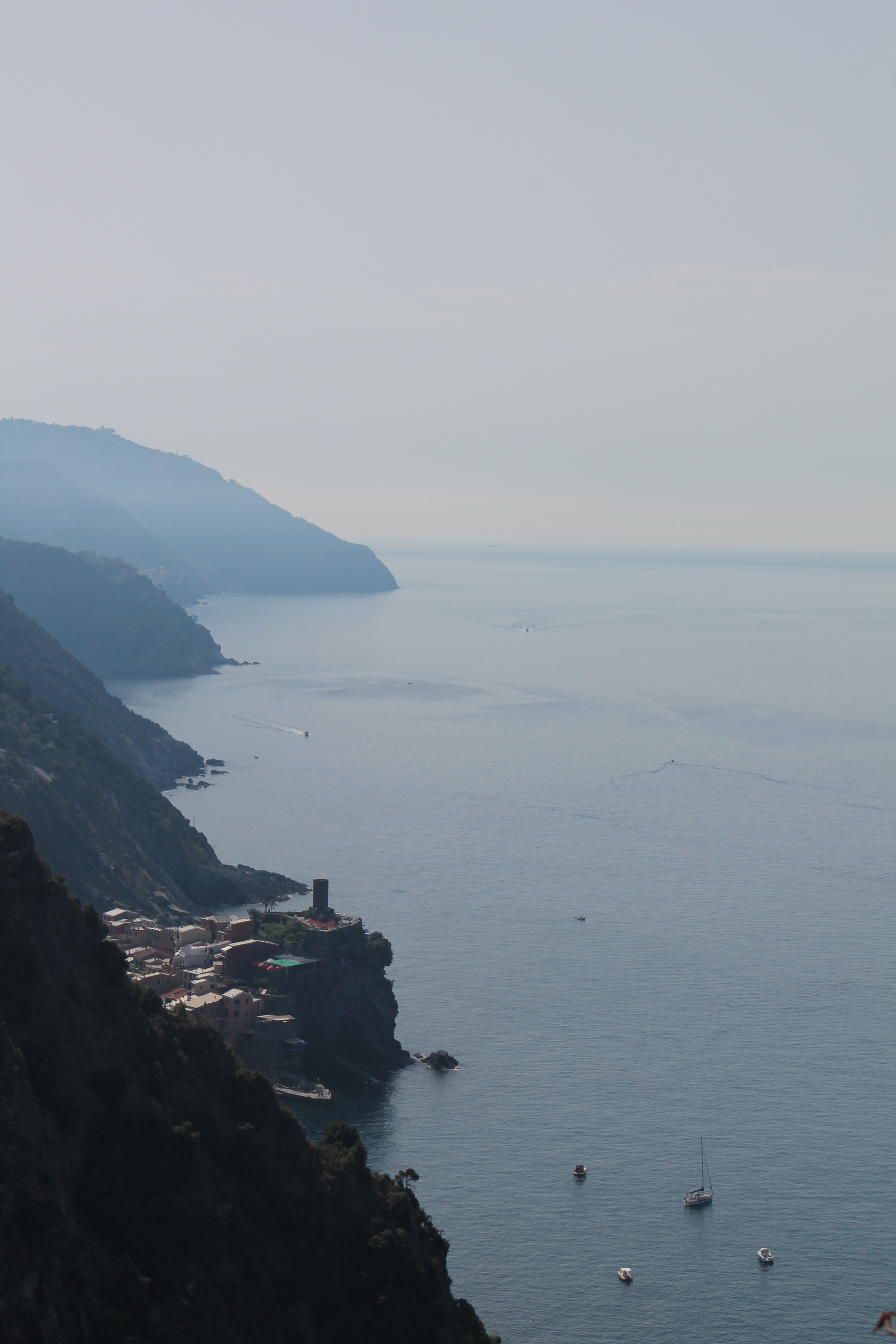 Vernazza is a tiny town with a tiny harbour. Most of the town exists along one main street, with the ocean on one end and the train station on the other. The buildings are fading pastels and, facing the water, a stone church sits on the sea’s edge. A tower looms on the hill above. We stayed in a beautiful little place off the main street (Vernazza Vacations) and were in Vernazza four nights total.