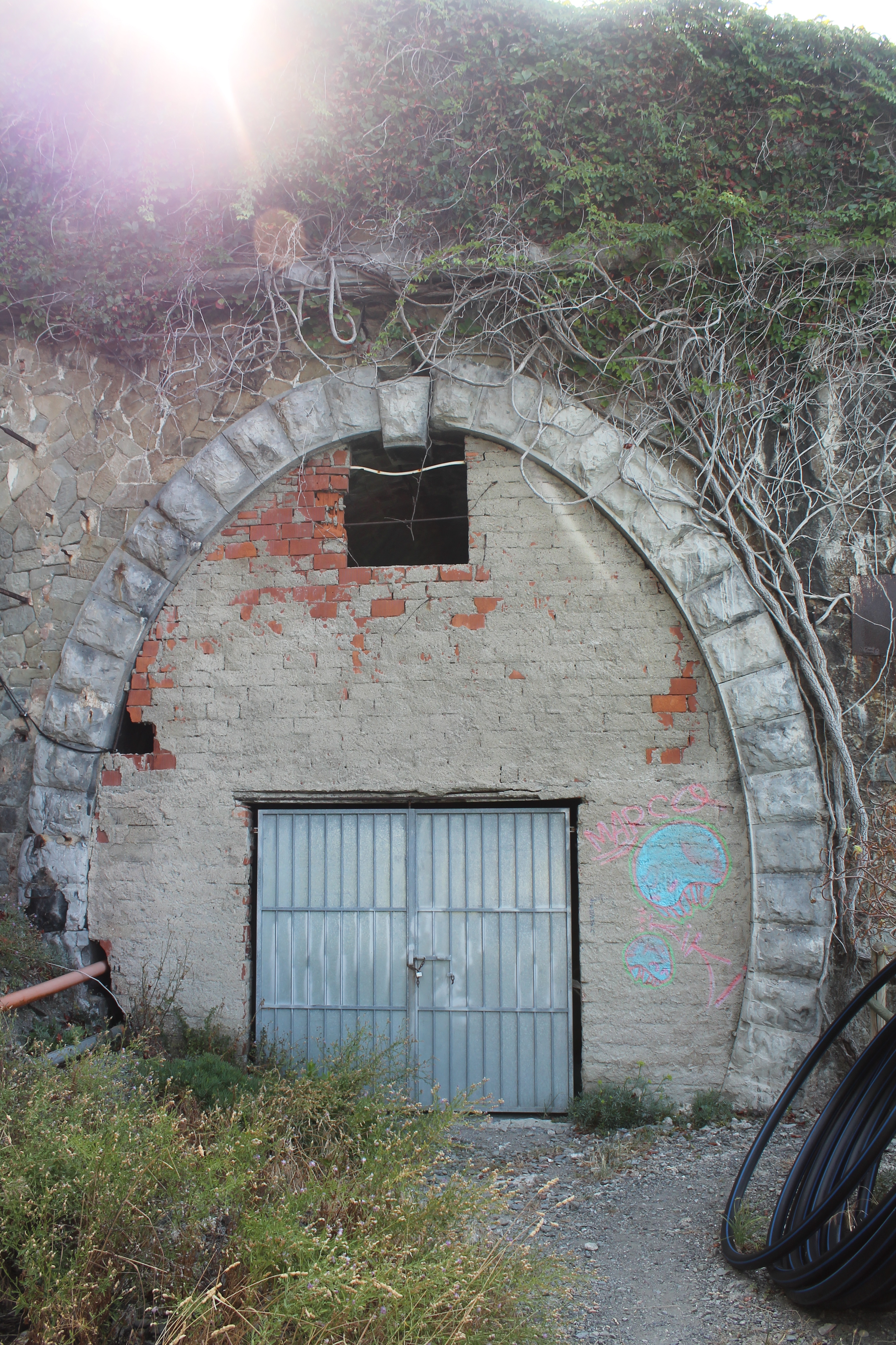 We decided to take the trail as far as we could, which brought us through the other side of town along a path lined with boarded up stalls until we reached a boarded-off tunnel.