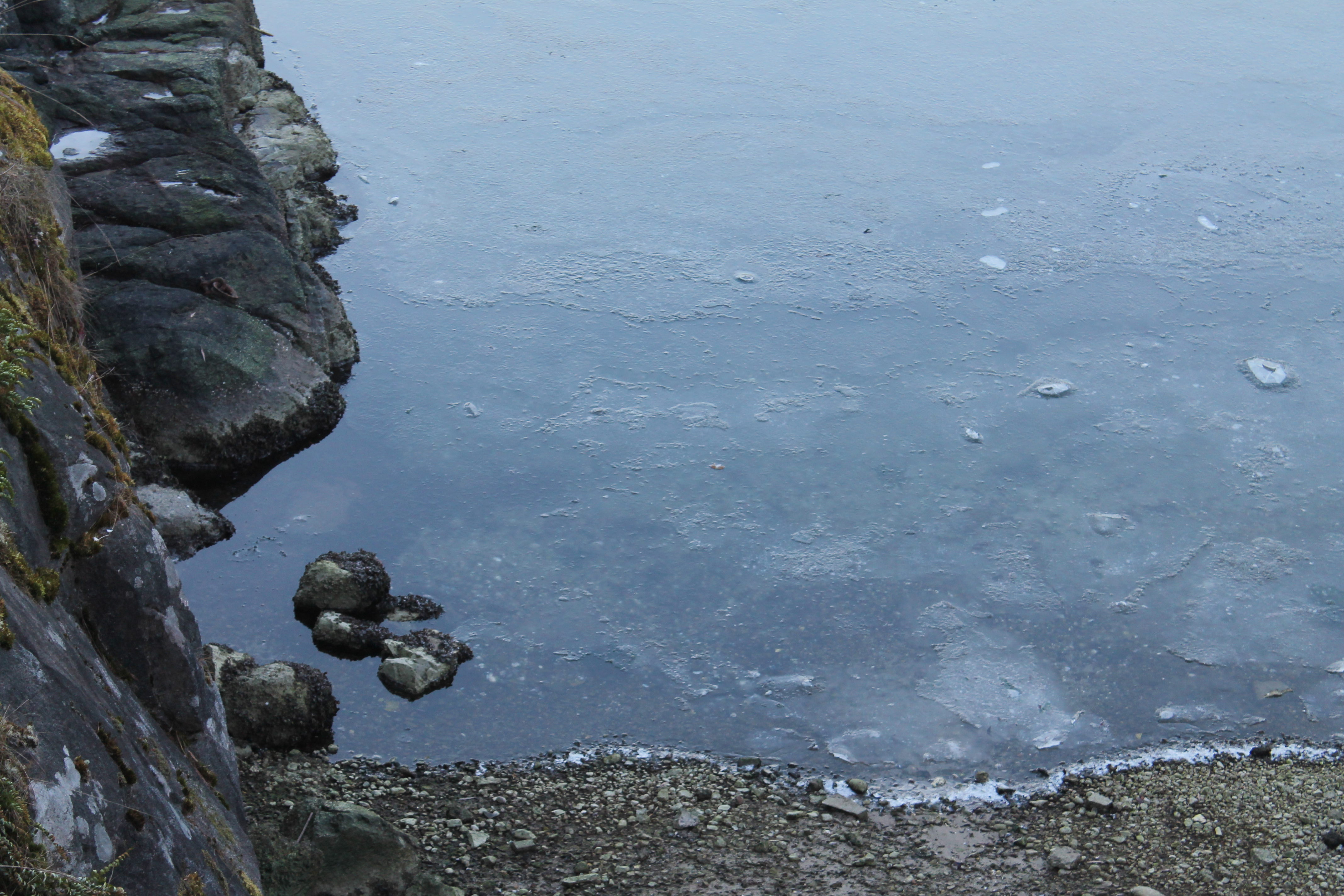 Someone ice skating on Trout Lake. Within seconds, Peter had pulled over the car and we were gingerly stepping onto the ice ourselves.