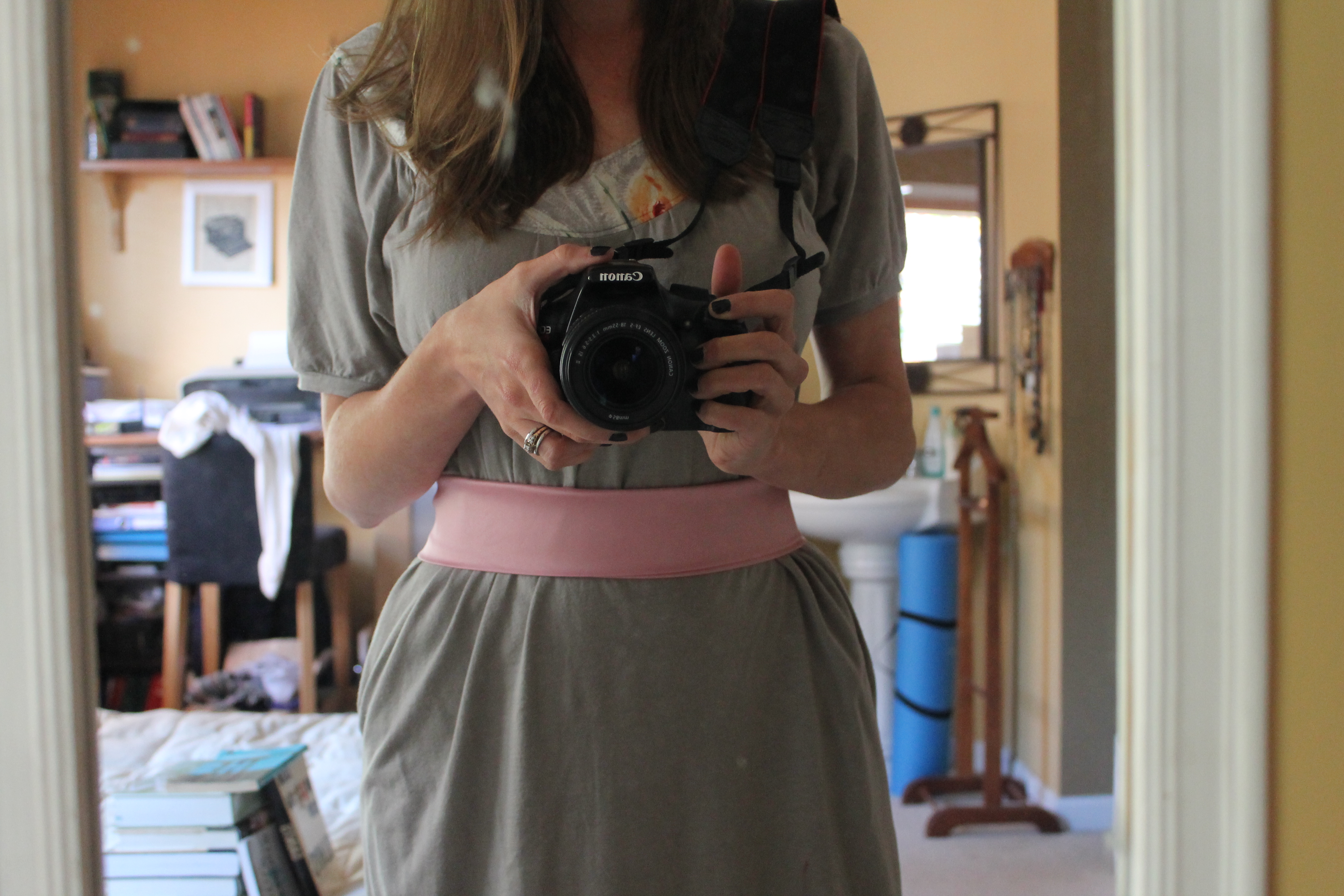 The pink sash is added – taken from a bridesmaid’s dress from a wedding I was in a few years back. This dress is a lovely, soft cotton and delightfully shapeless so I often sash or belt it. In the winter I wear it loose with tights and a cardigan. Plus, who doesn’t love a dress with pockets!