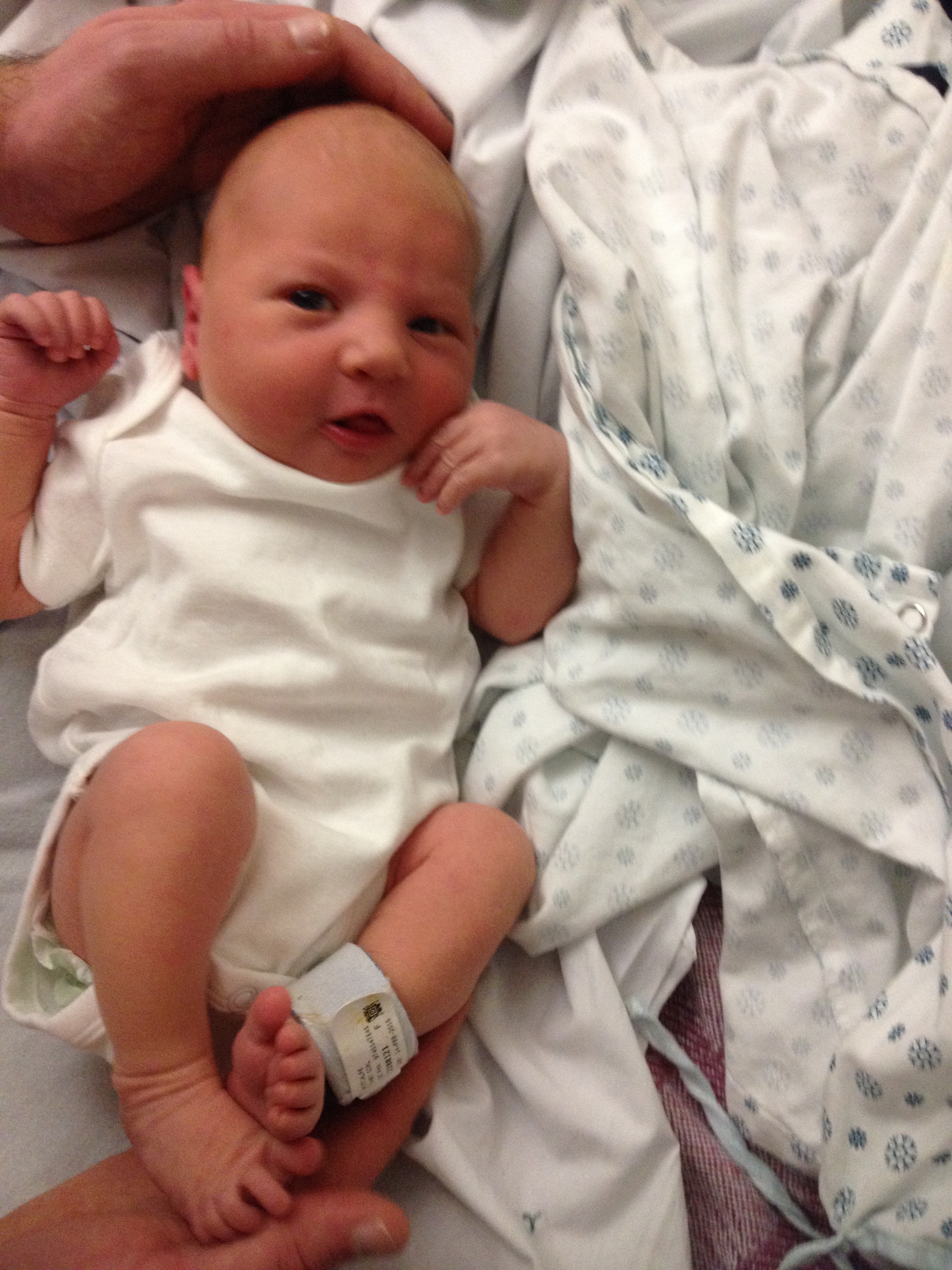 It was about half past nine on Monday night when Peter and I got to the hospital. We were sent to an assessment room (a curtained-off corner) where I was hooked up to a fetal monitoring system while I waited for a doctor to see me. The curtains weren’t soundproof and so we couldn’t help eavesdrop on the woman next to us. Her water had also broken before labour started and her doctor was sending her home to await labour naturally. If it didn’t start, she would come back in the morning and they would induce her. Thinking we would be given a similar option, Peter and I agreed that we would hold off on inducement as long as possible.