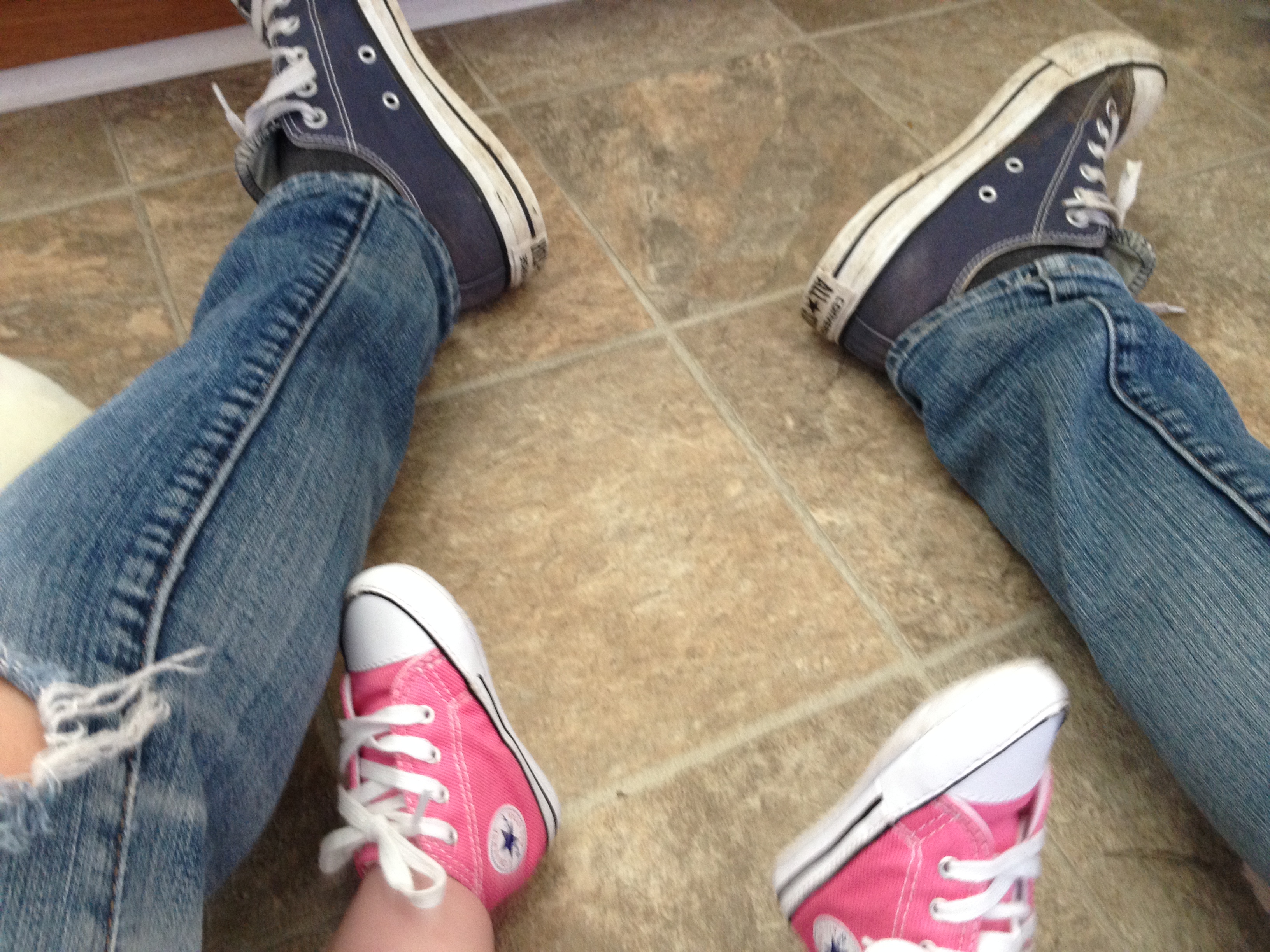 I swore I would never be one of those moms who dressed in matching outfits with her daughter (and I won’t be! really!) but how cute are these baby Chucks? I’ve been a Converse fan for years now and someone gave these little pink Converse sneakers to Pearl as a gift.