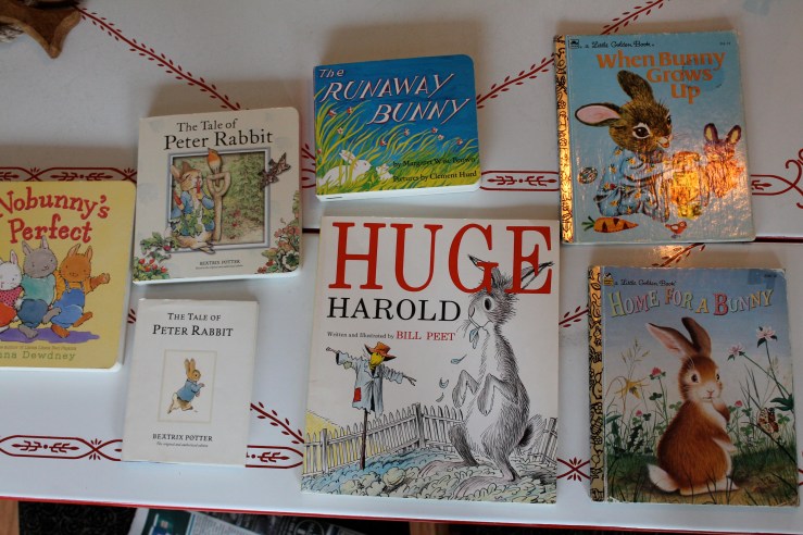If you ask Pearl currently what she wants to be when she grows up she will gleefully tell you, “A bunny!” This is mostly due to the book on the top left, When Bunny Grows Up. Regardless, bunnies are popular in our household and Pearl’s book collection reflects that. When Bunny Grows Up and Home for a Bunny are two of her very favourite books right now. In fact (mom brag coming), she can tell you page by page what happens in Home for a Bunny. (Spoiler alert: The ending involves two bunnies, which is very exciting for Pearl.) I found both of these Golden books at our local thrift store and was thrilled to find some lesser known works from Margaret Wise Brown, Garth Williams, and the Scarrys.