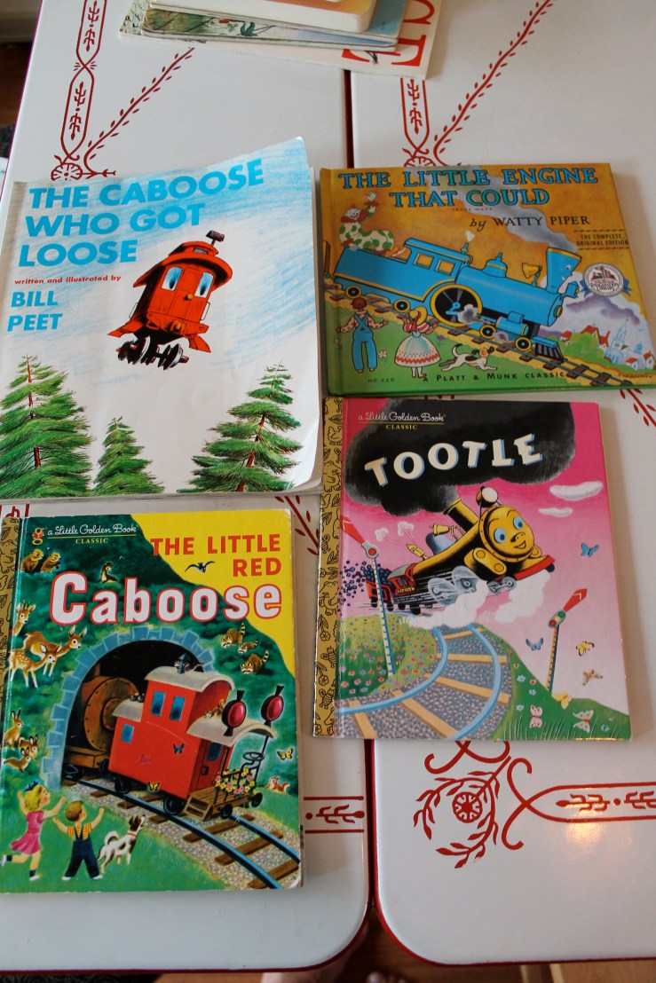 Pearl’s favourite of these currently is probably The Little Red Caboose. We found that one at a Goodwill in Portland and Pearl and I curled up in a chair in the furniture section to read it over and over again while Peter looked at clothes. The pictures are pretty outdated (one page definitely borders on the offensive) but the story is sweet and simple and has a nice rhythm to it.