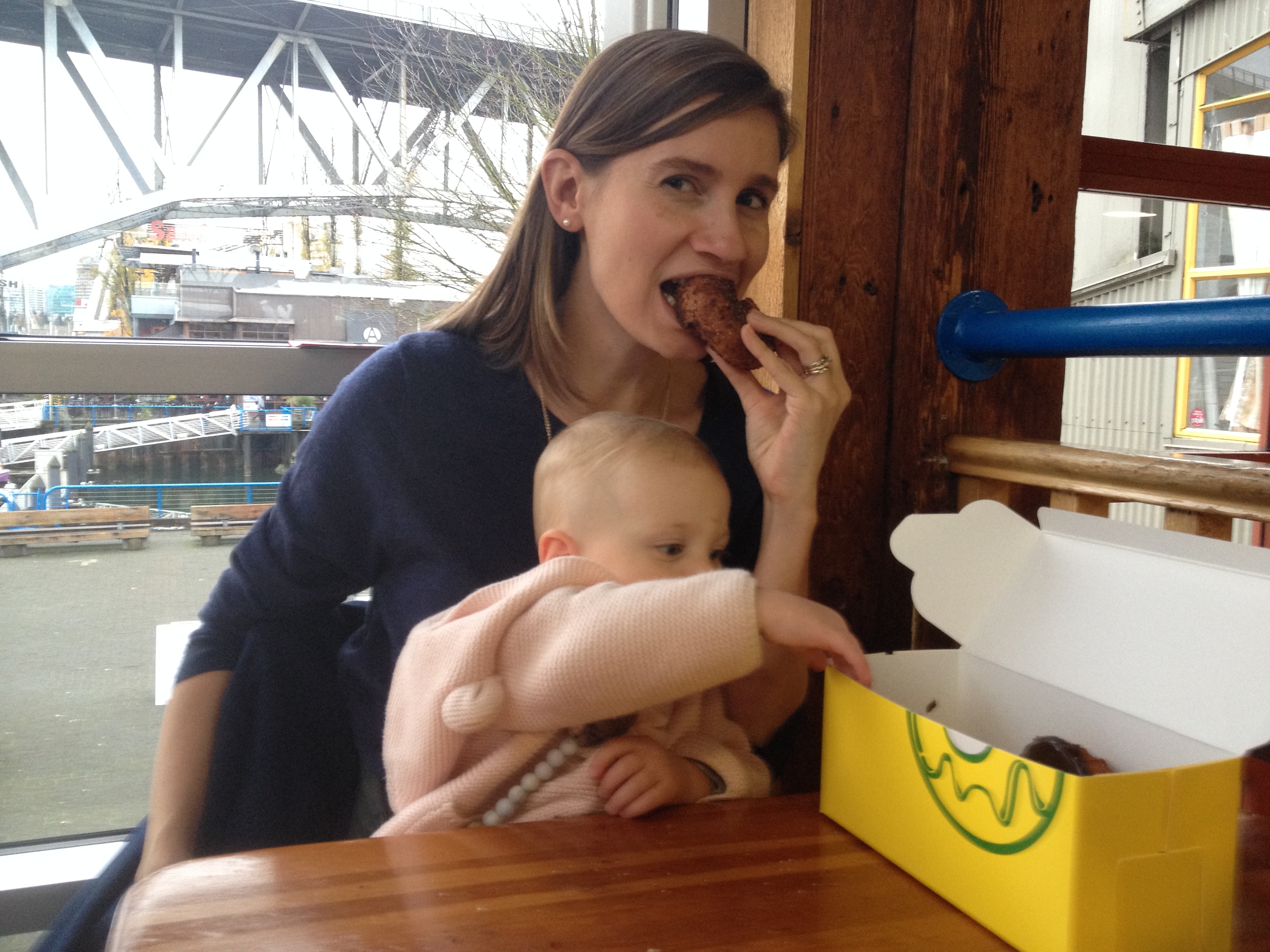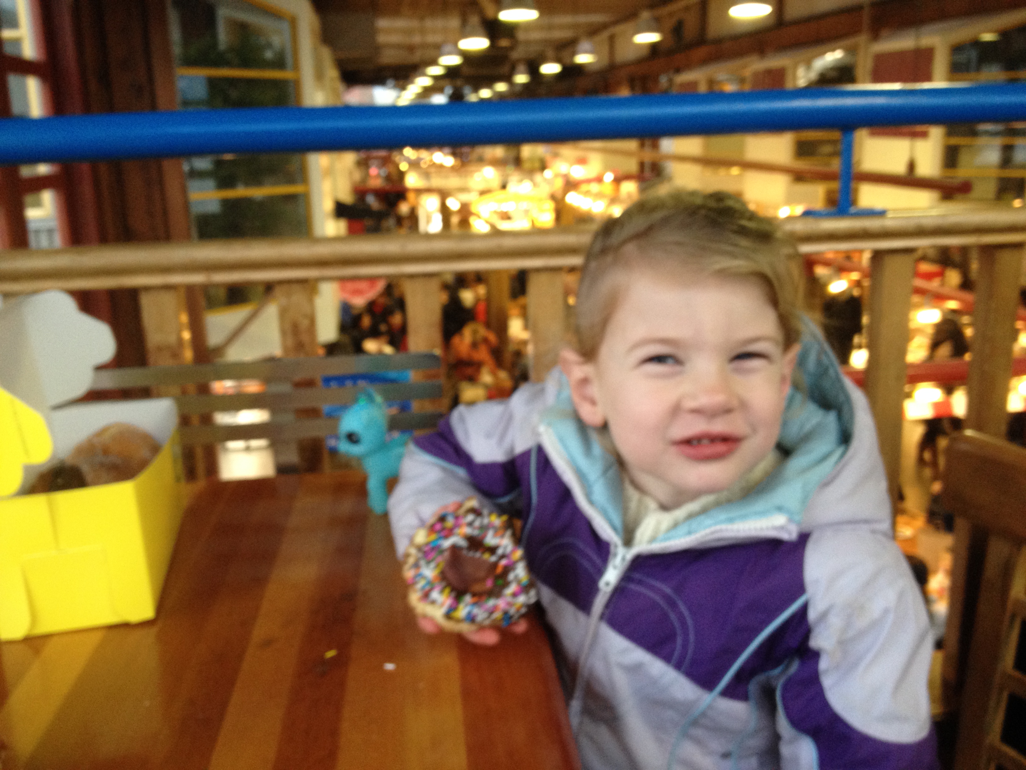 After lunch I took the girls to the Central Library to peruse the kids section and hang out in their play area while it rained and Peter did some of his own shopping. Then we all headed to Granville Island for a trip to the Kids Market and a visit to Lee’s Donuts. (Absolutely necessary if you ever visit Granville Island.)
