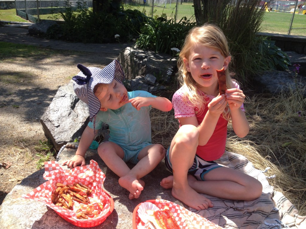 I feel like this picture really encapsulates summer for my kids. Swim suits, hot dogs, sunshine, filthy faces, perfectly happy.