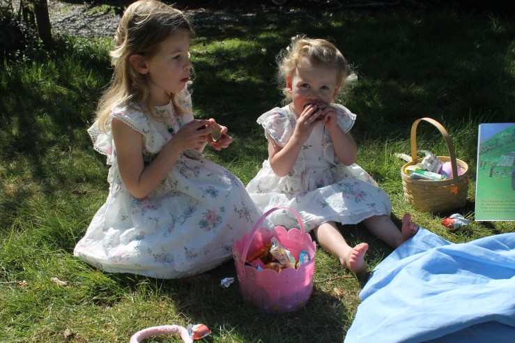 Early in March, when we were advised to stock up on essentials and everyone was buying toilet paper like crazy, Peter came home with a bag full of Easter candy. “I want to make sure the girls get their Easter hunt,” he told me. It seemed a little extreme to me then but I’m so thankful he did because of all the things on our list, the only one that stayed the same was that backyard Easter hunt.