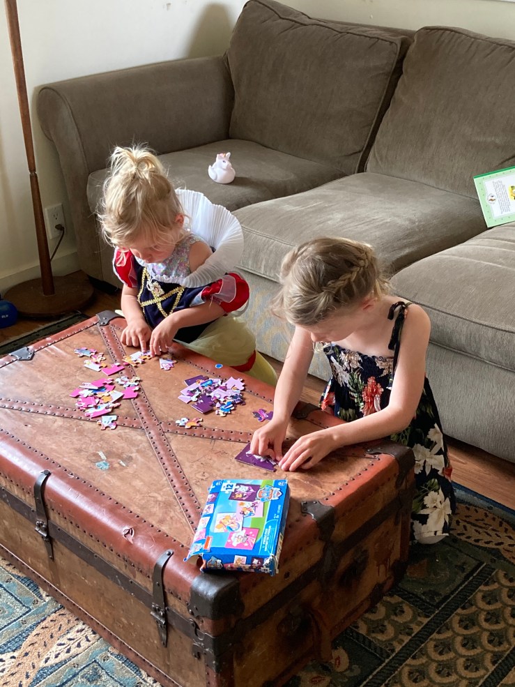 On sunny days, the girls and I have walked to town. There isn’t much in the village that I can go to with the kids right now but we’ve picked up orders at the library, walked along the waterfront, and got ice cream.
