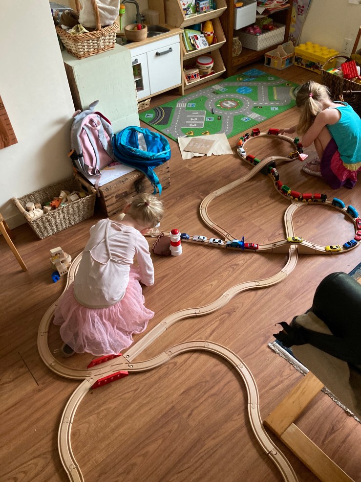 Your backyard is delightful, and your kids always make the funniest faces in their pictures! A fun thing you could try: have a color theme day, such as everyone wears all the blue clothes they have and read books with blue covers and eat blue food, if you have it. A simple challenge that may add some delight to the day.
