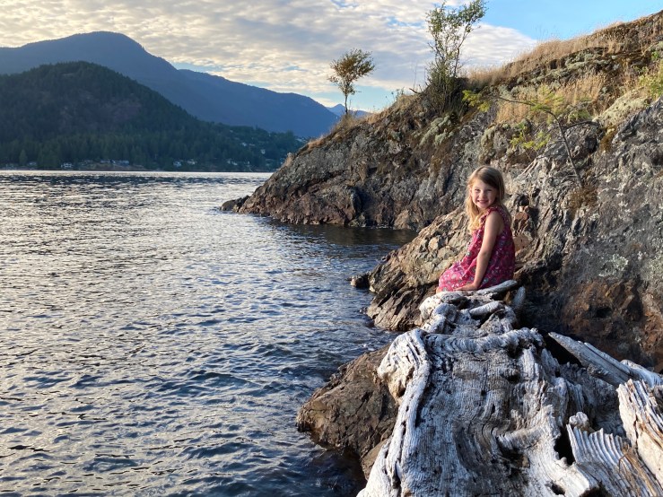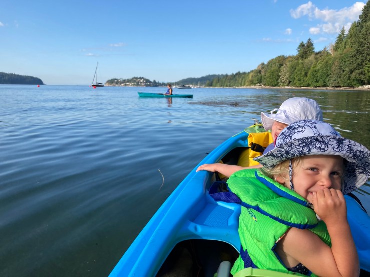 2020 marked a milestone for us in that this was the first year we kayaked over as a family of four. For the last two summers, Peter has taken Pearl in our double kayak while I’ve ferried across with Rose. If we launch from Gibsons, the paddle takes approximately 30 to 40 minutes. This summer we felt that Rose was ready to try it. We’ve done a few short paddles with all four of us in our double kayak but knew that likely wouldn’t work for this trip, particularly with all of the gear needed for 2 nights of camping.