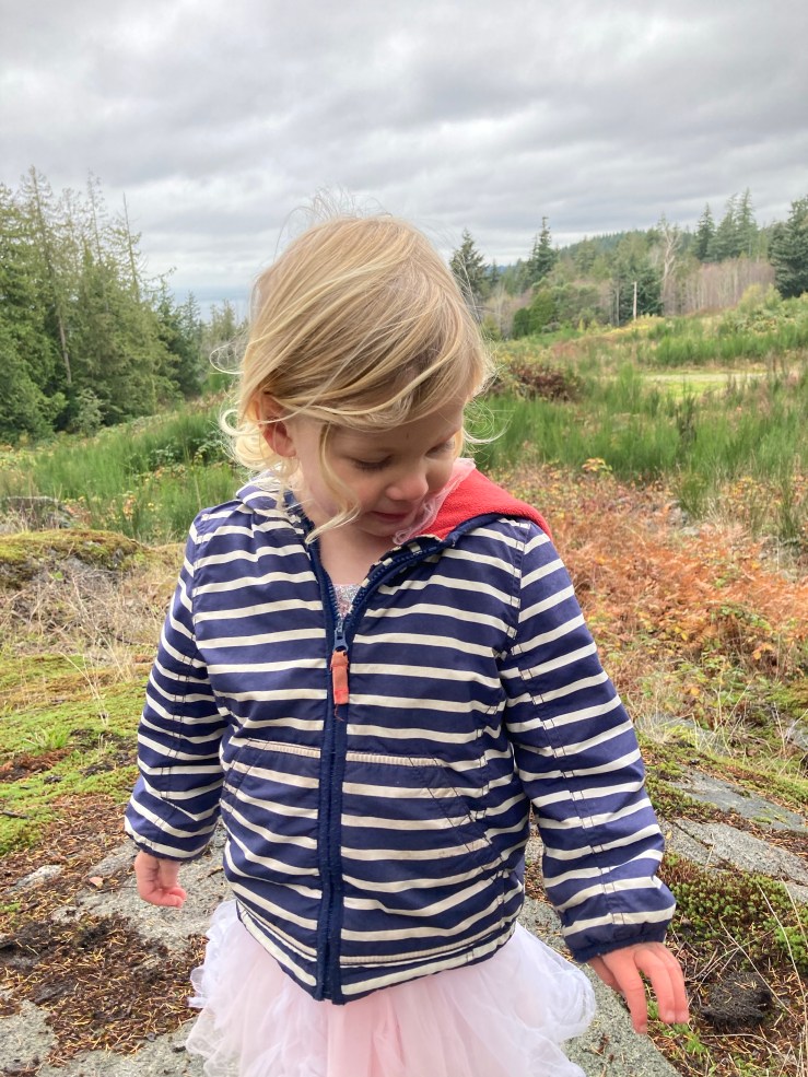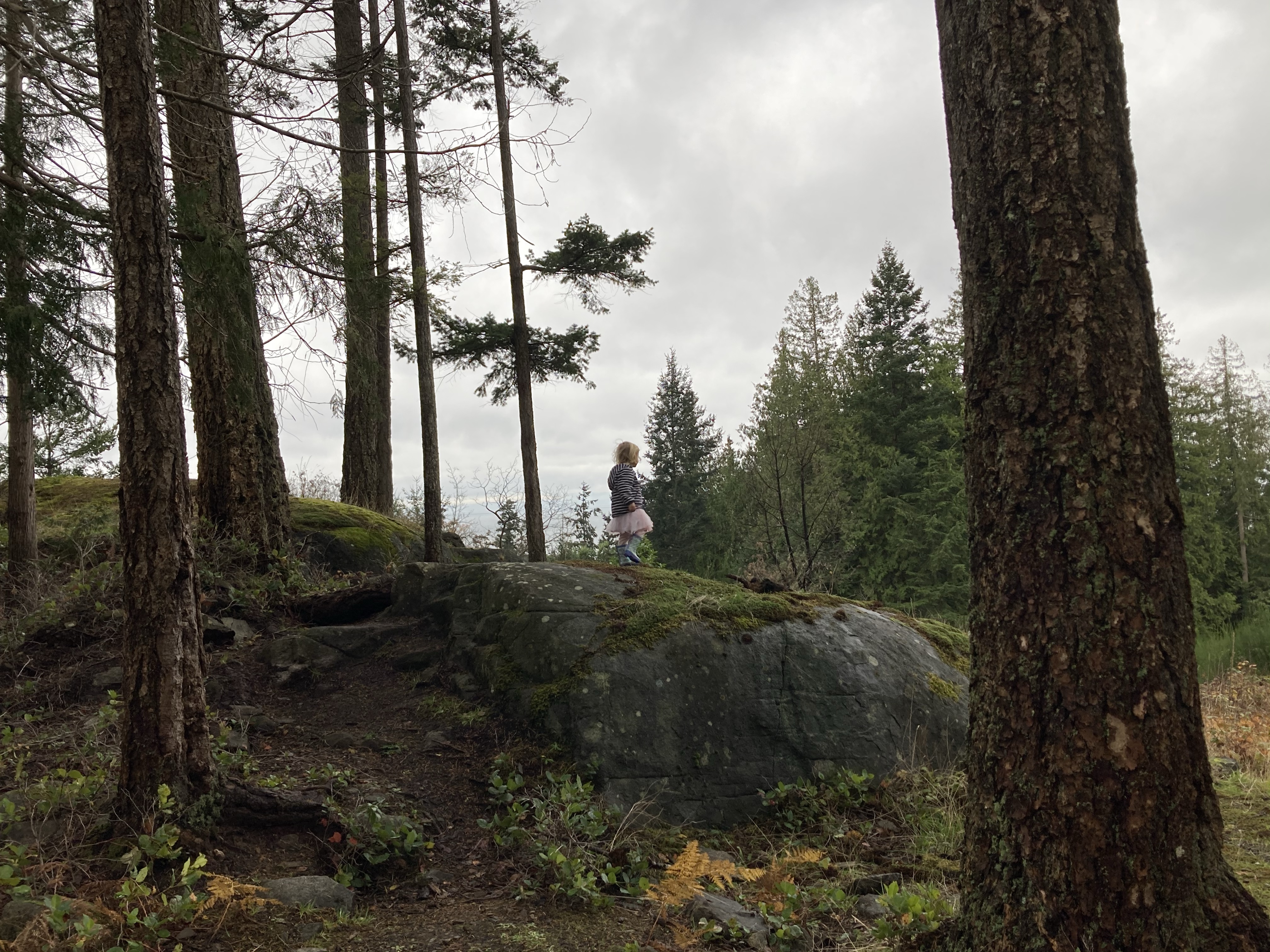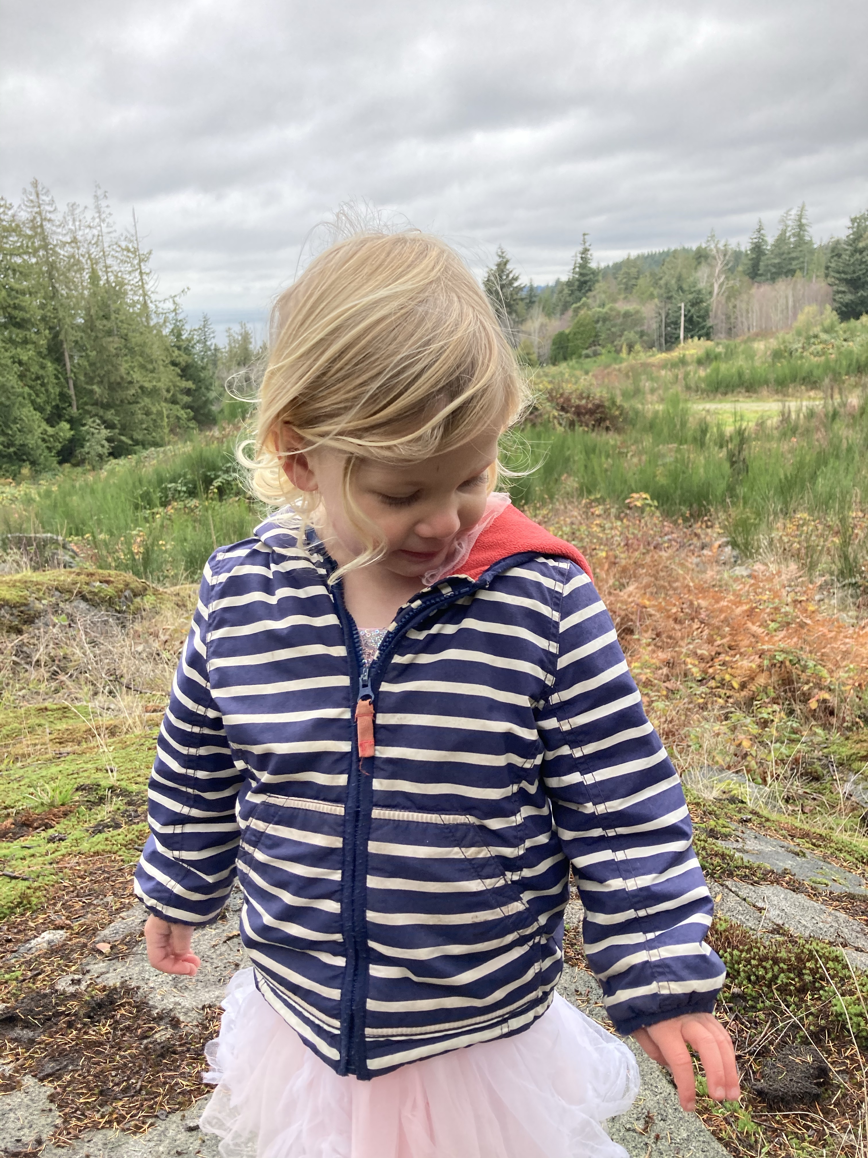 - The routine of school drop-off and pick-up. Okay, sometimes this one is hard. Some days it’s hard to get everyone out the door and sometimes I am not patient with the girls. We have about a 20 minute walk to school so a decent portion of my day revolves around taking Pearl to school, coming home, going back to school to pick Pearl up, and then returning home. But I also love the routine and the rhythm it gives to our days. I love seeing a new routine of our neighbourhood. The other parents taking their kids to school. The dog walkers. The postal workers. Waving to our friend around the corner as he heads off to work or stopping to say good morning to the friendly older lady out for her daily walk. I love the opportunity it creates to talk to Pearl about her day at school. I love the chance it gives to take in the natural world around us. We’ve stopped to look at spiders, observe eagles, watch some workers felling a big tree, or simply collecting colourful leaves.