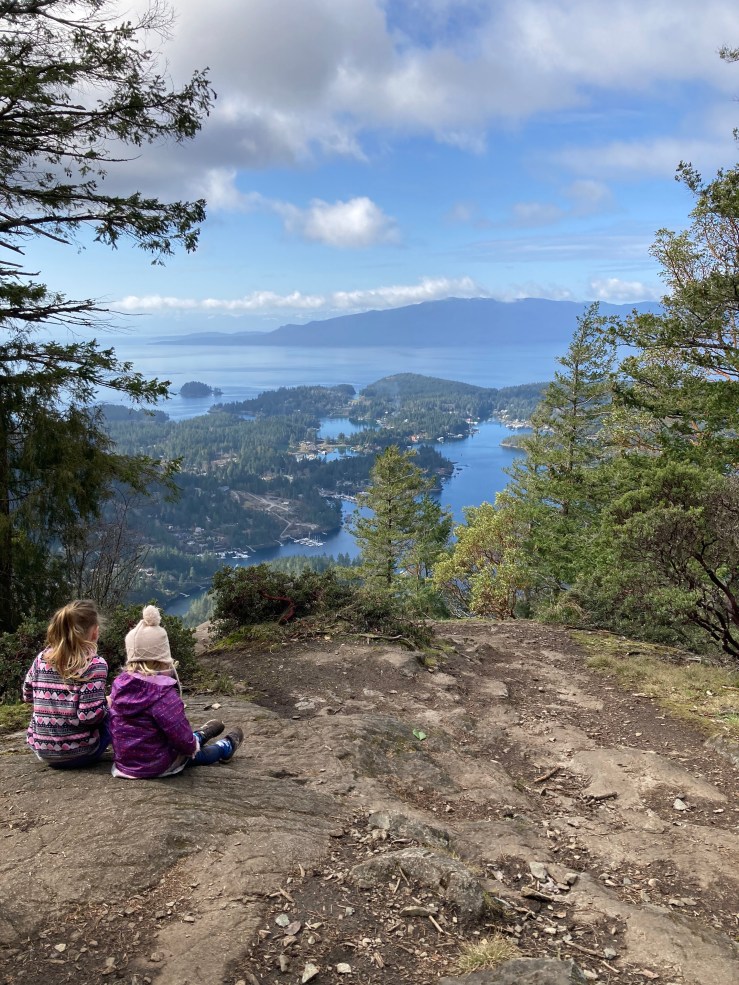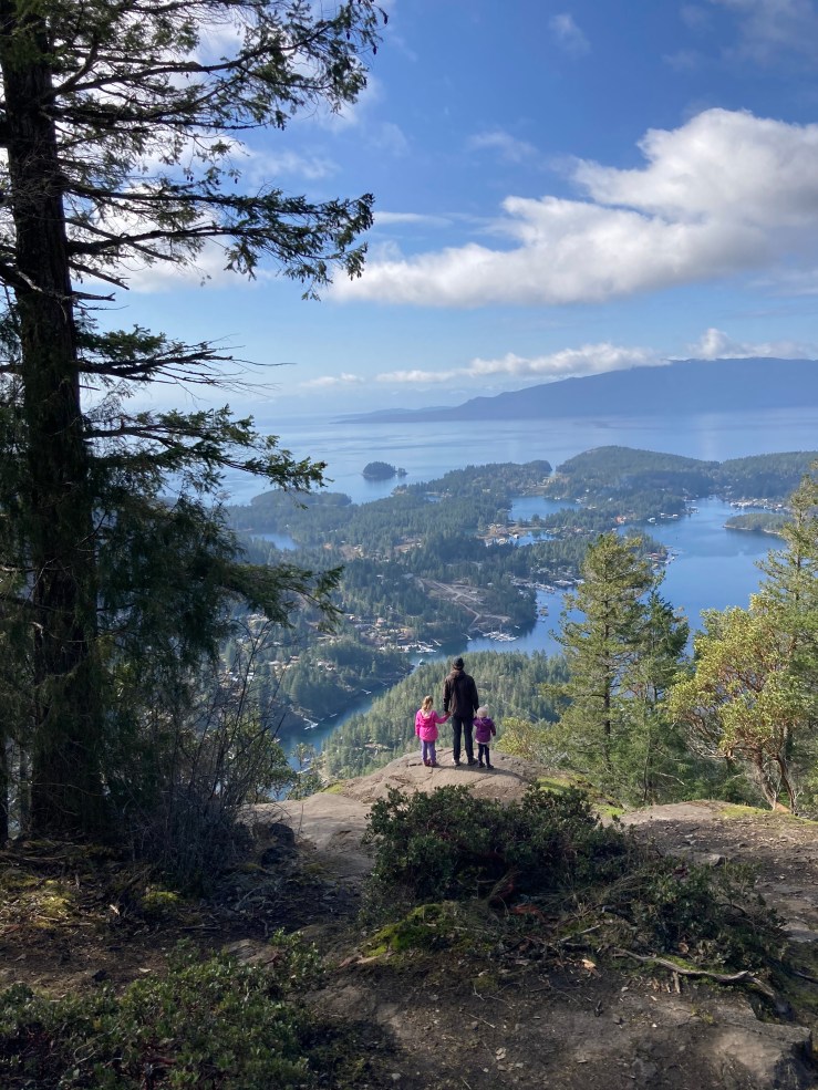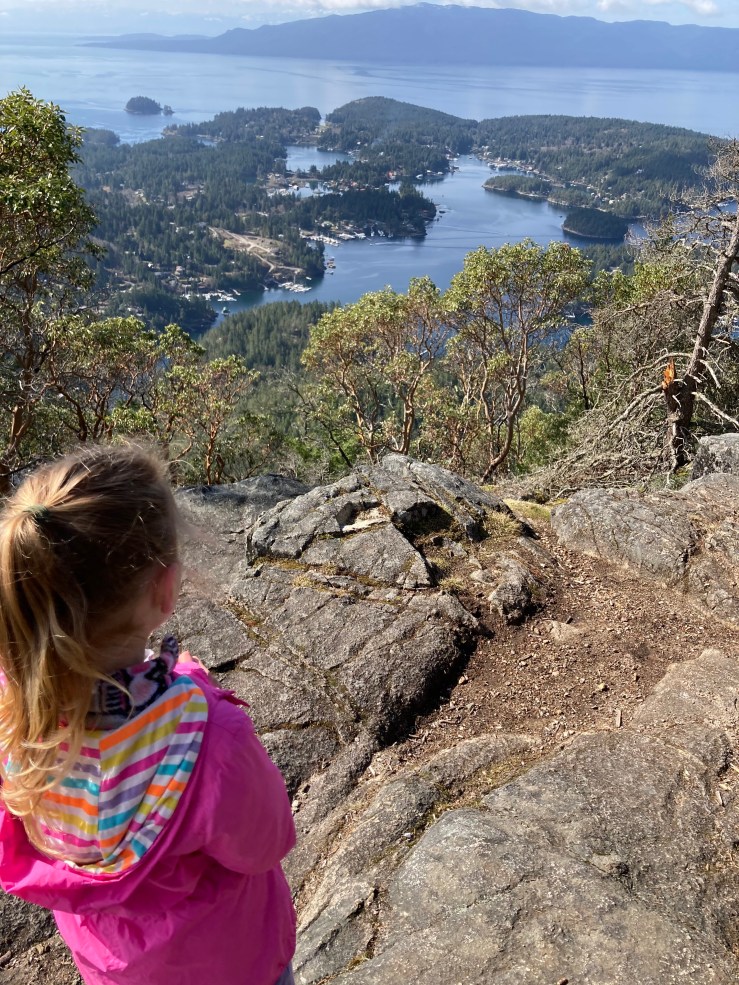 We climbed Mt. Daniel in Pender Harbour, a hike we’ve done several times before. This time Peter and I decided we were going to encourage Rose to hike as much of it as she could. Rose is 3 and a half and a perfectly capable walker and hiker. But she loves to be carried and usually ends up riding in the kid backpack. If I’m being honest, we often give in to end the whining. This time, we planned ahead, and set timers and landmarks and used some motivational treats along the way. And Rose made it! It took an hour and forty-five minutes up to the peak (it usually would take 45-60 minutes) but she made it. At the time she told me, “I’m proud of myself” and we are so proud of her too. (Peter carried her on the way down.)