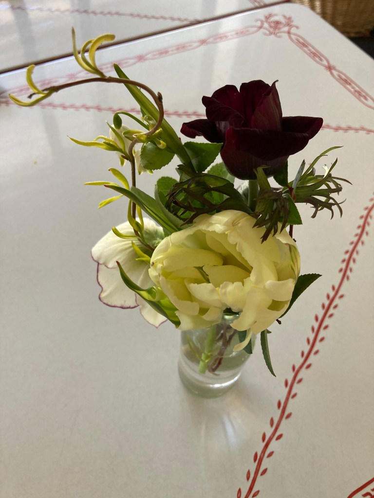 • Pearl and I had a Saturday date together. We walked to the village together, strolled through the farmers’ market, picked out some treats, and had a drink on an outdoor patio at a local coffee shop. She picked out these flowers at the farmers’ market: