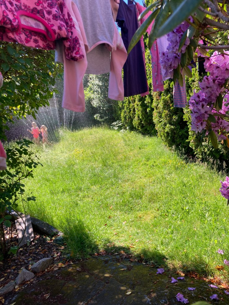 - Sprinklers and popsicles in the backyard.