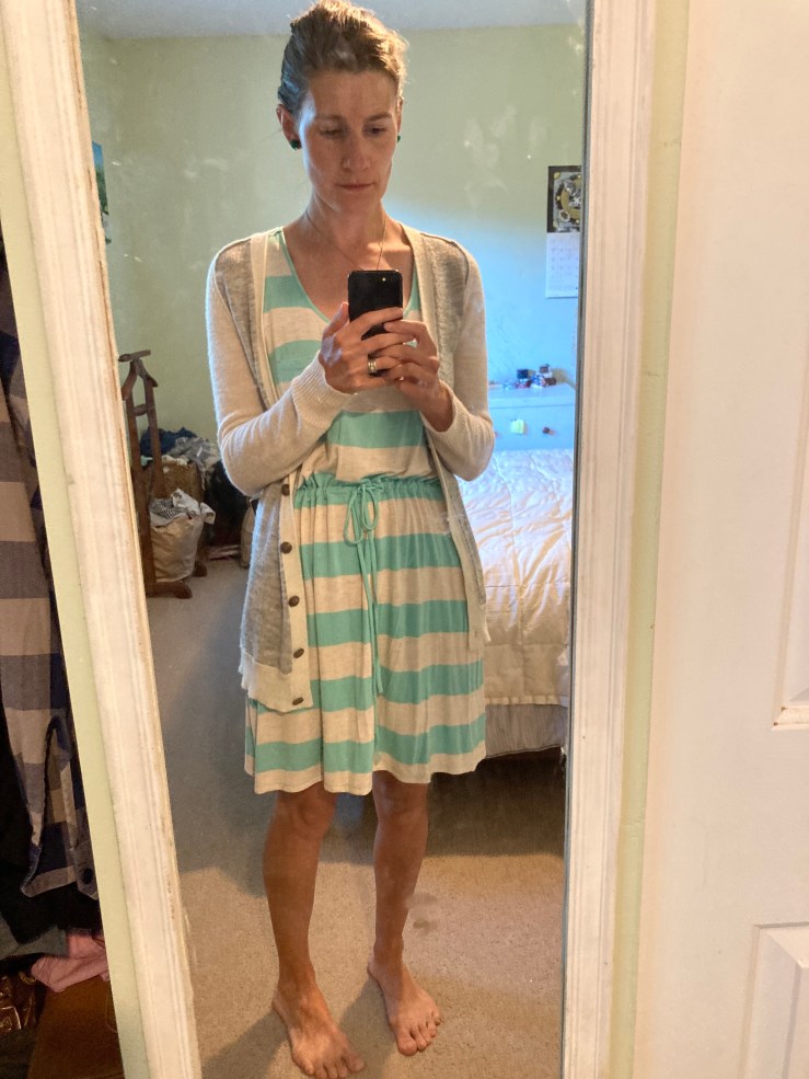 - My dress challenge continues about the same. Weather was a bit better this week but I still skipped a couple of days. I’m running into the same problem I have in previous years, namely that some of my dresses are a little fancier than my daily life calls for. This week was also my first dress re-wear of the month. What remains to be seen is when I will finally clean this mirror!