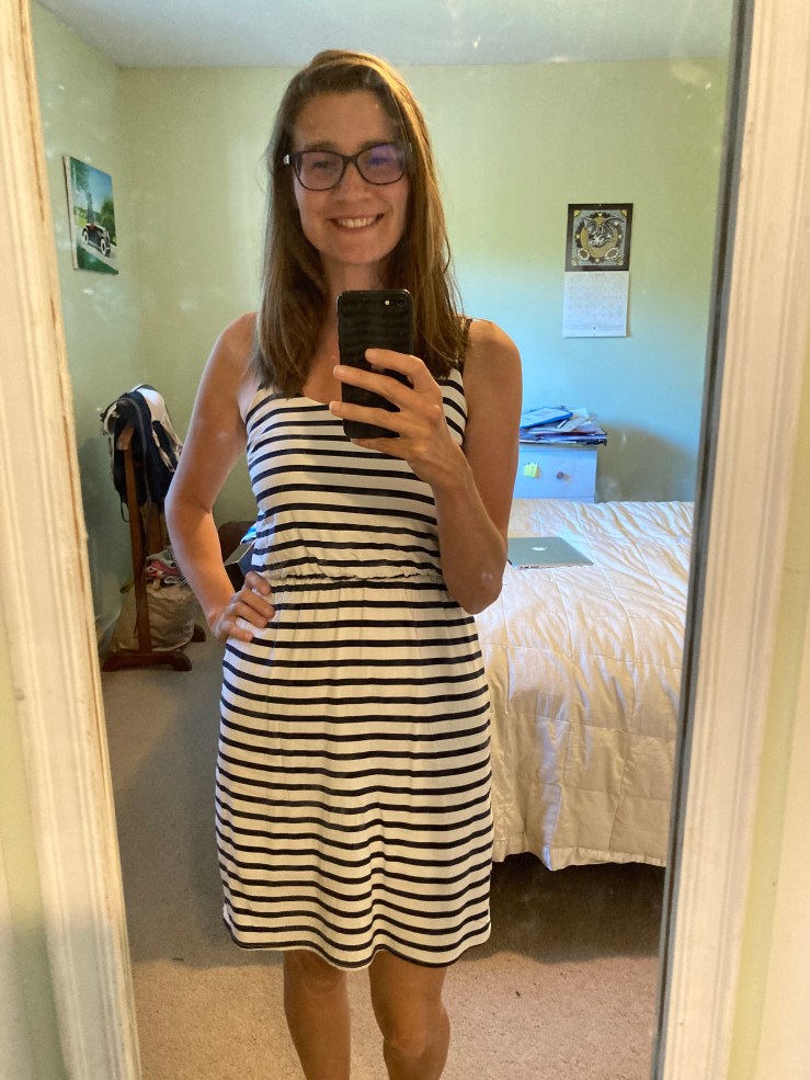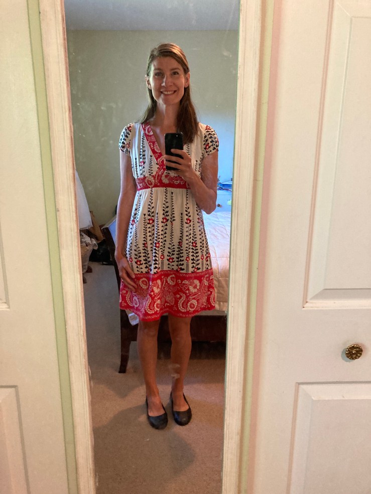 - The latest installment of the Dress Challenge. Two repeats this week. With our current heatwave, I’d probably be wearing a lot of dresses anyway as I generally find them the coolest, most comfortable clothes. Full disclosure: on Friday when the girls were both home and Peter was at work, I didn’t get dressed until well past noon. We took it suuuuper easy in our house that day!