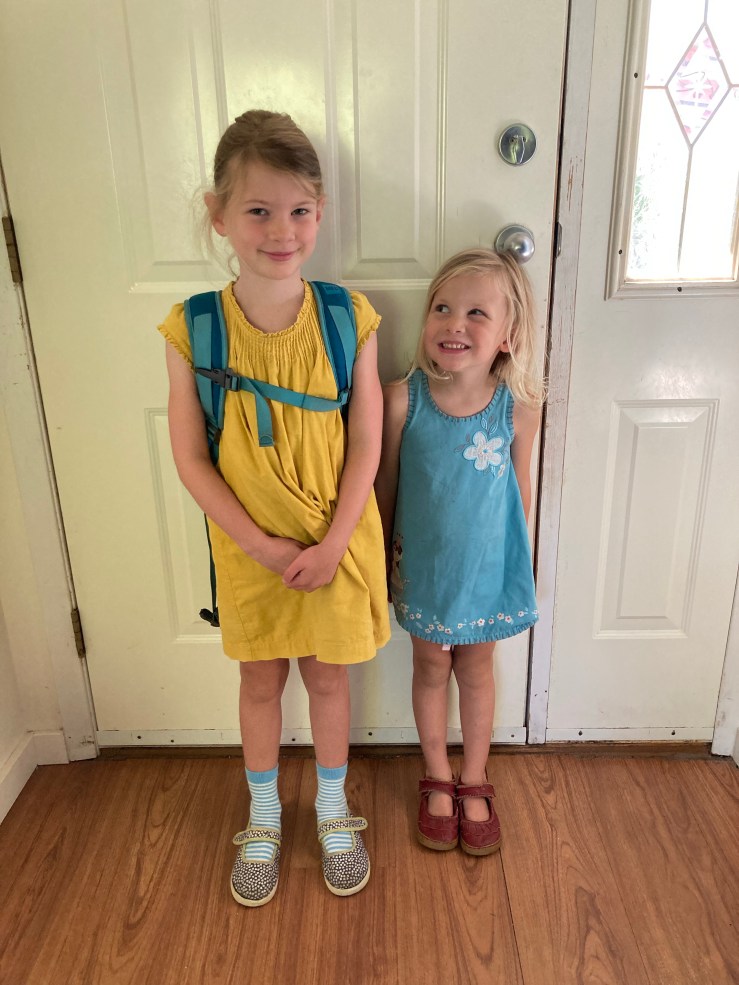 1. My littlest was in tears one morning because she didn’t get to hug her sister good-bye! They’re both looking forward to the day they are in school together!