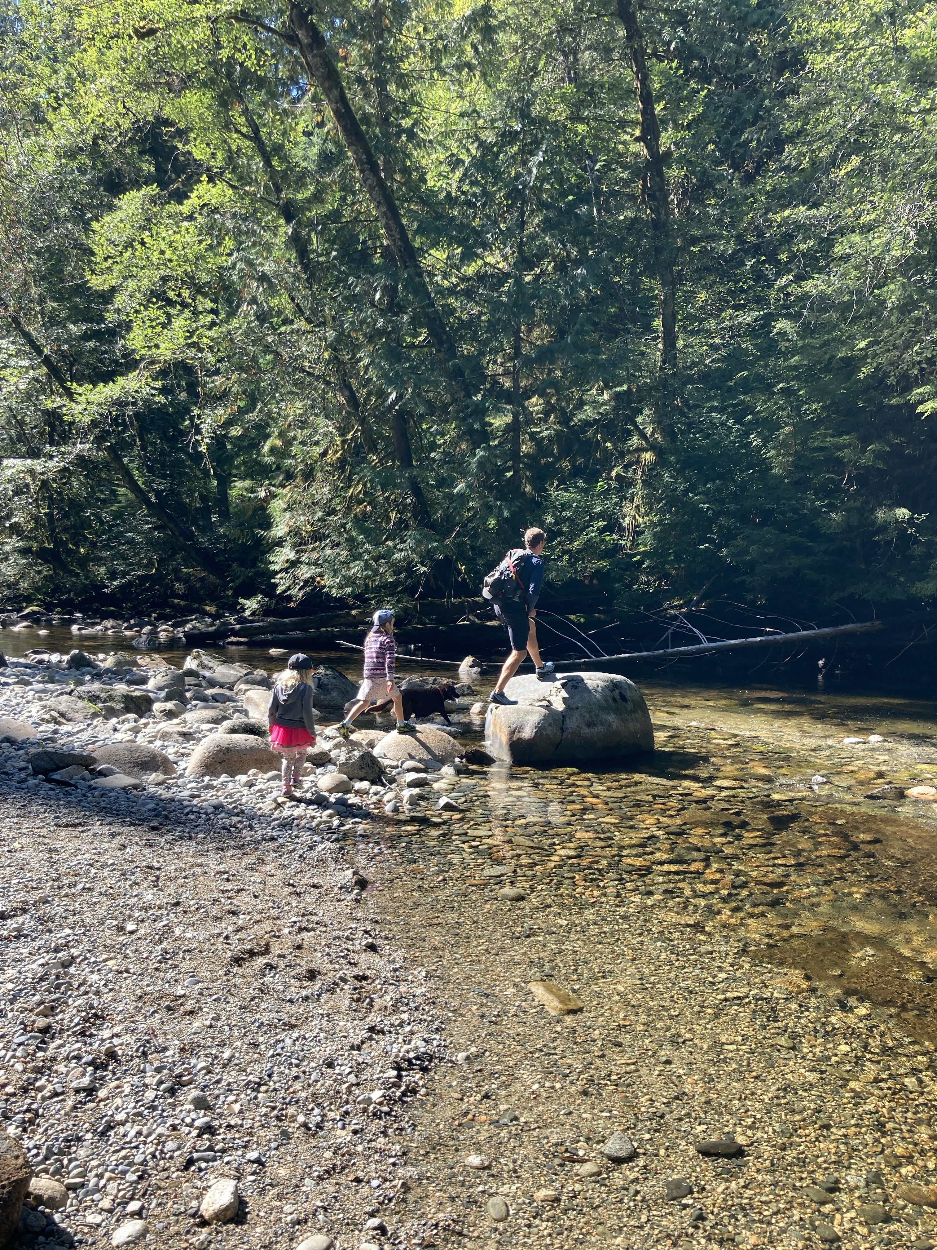 Last Sunday was crisp and sunny, a perfect late summer day. We had Bella the Dog staying with us so went for a walk along Chapman Creek. We watched the salmon on their journey upstream, climbed on the rocks along the riverside, and then went to my in-laws’ to pick pears and apples from their trees.
