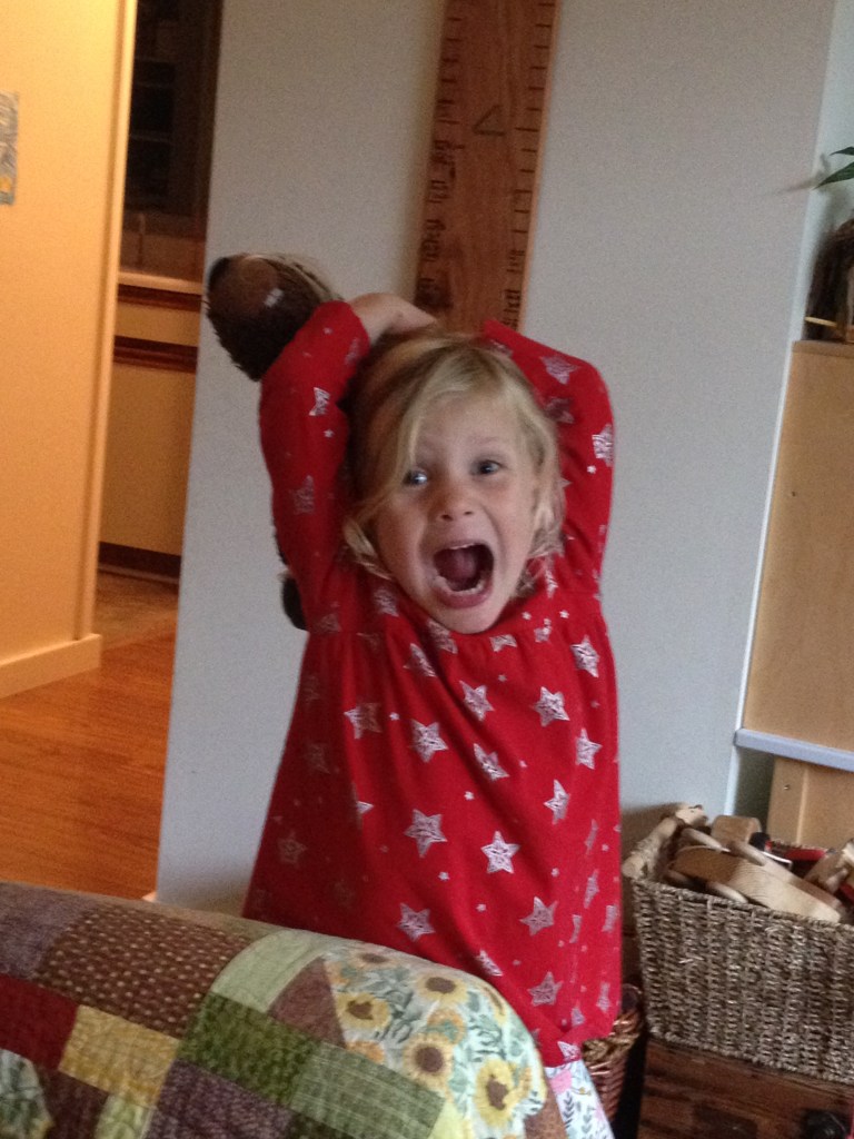 Hahaha! Oh, my kids definitely have tantrums! Less frequently as they get older but it still happens. Bella and Rose are basically the same height so Bella will push her nose right into Rose’s face and that always makes her laugh.