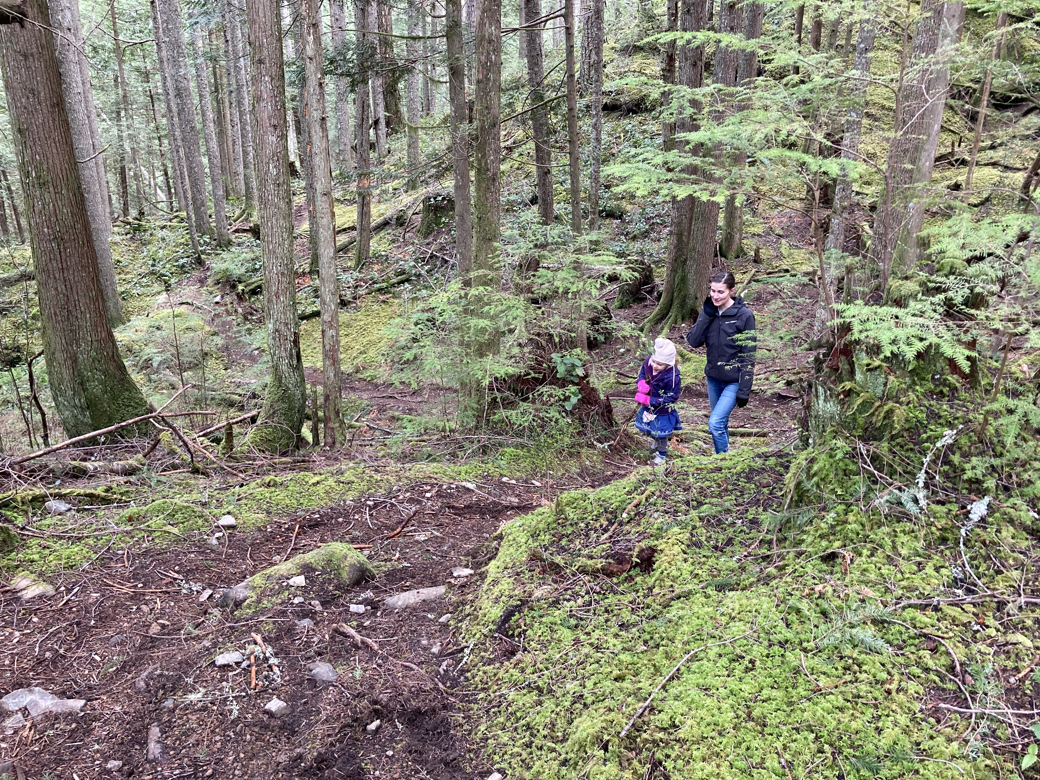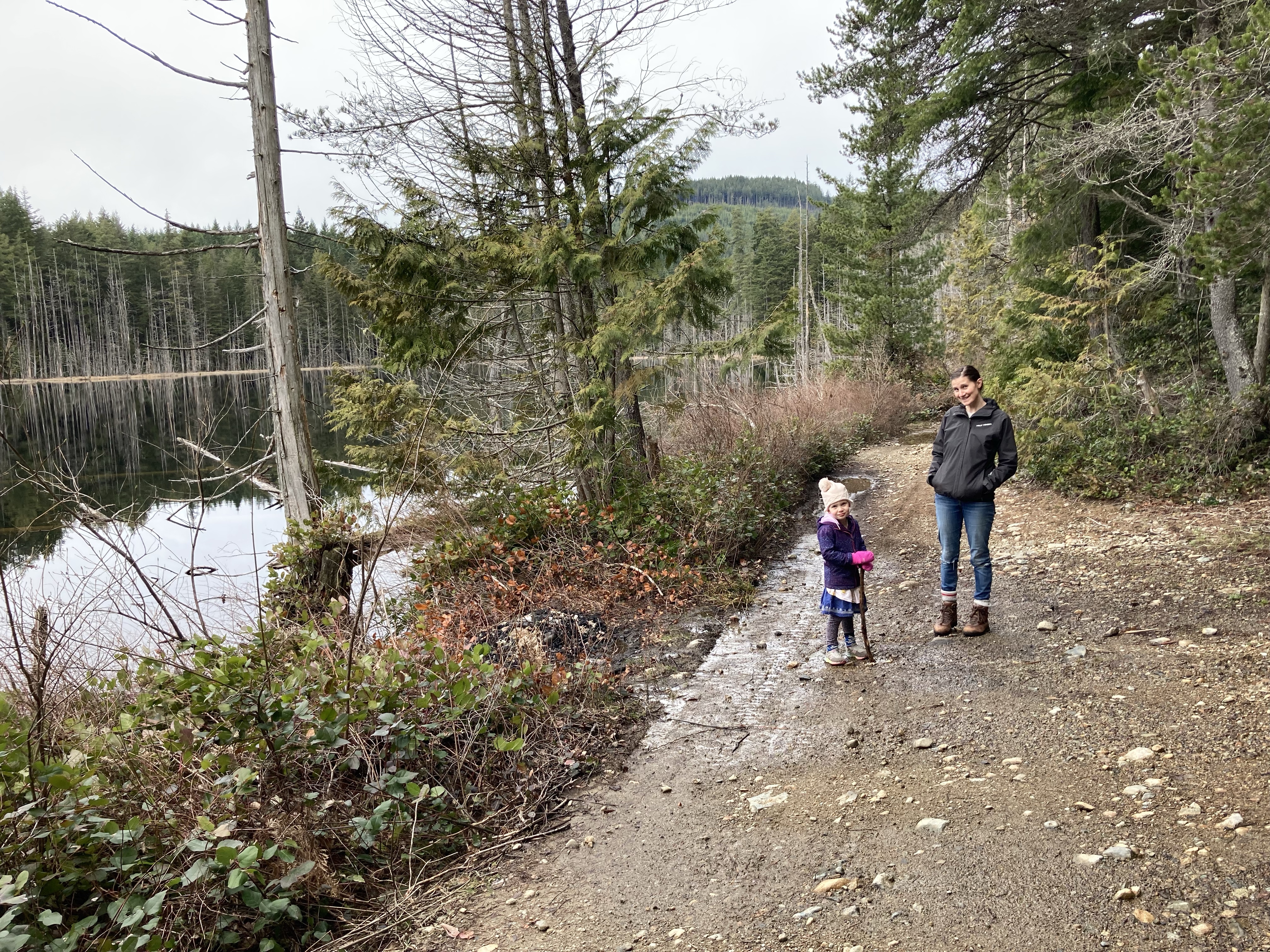 • We haven’t hiked as much recently but headed out to the local trails again this week. The girls hiked without complaint and had a great time visiting a beaver pond, exploring a dock, and circumnavigating a lake.