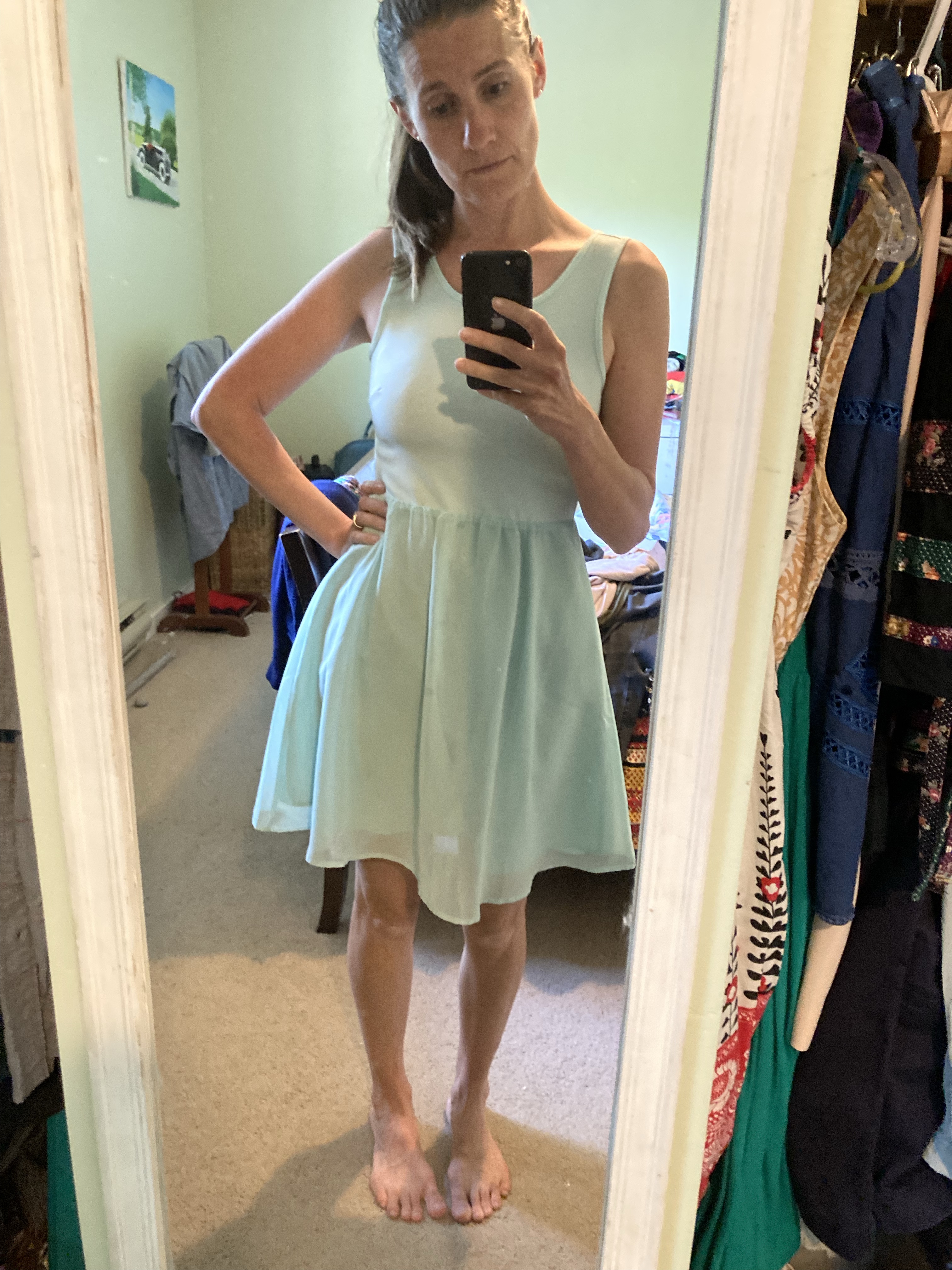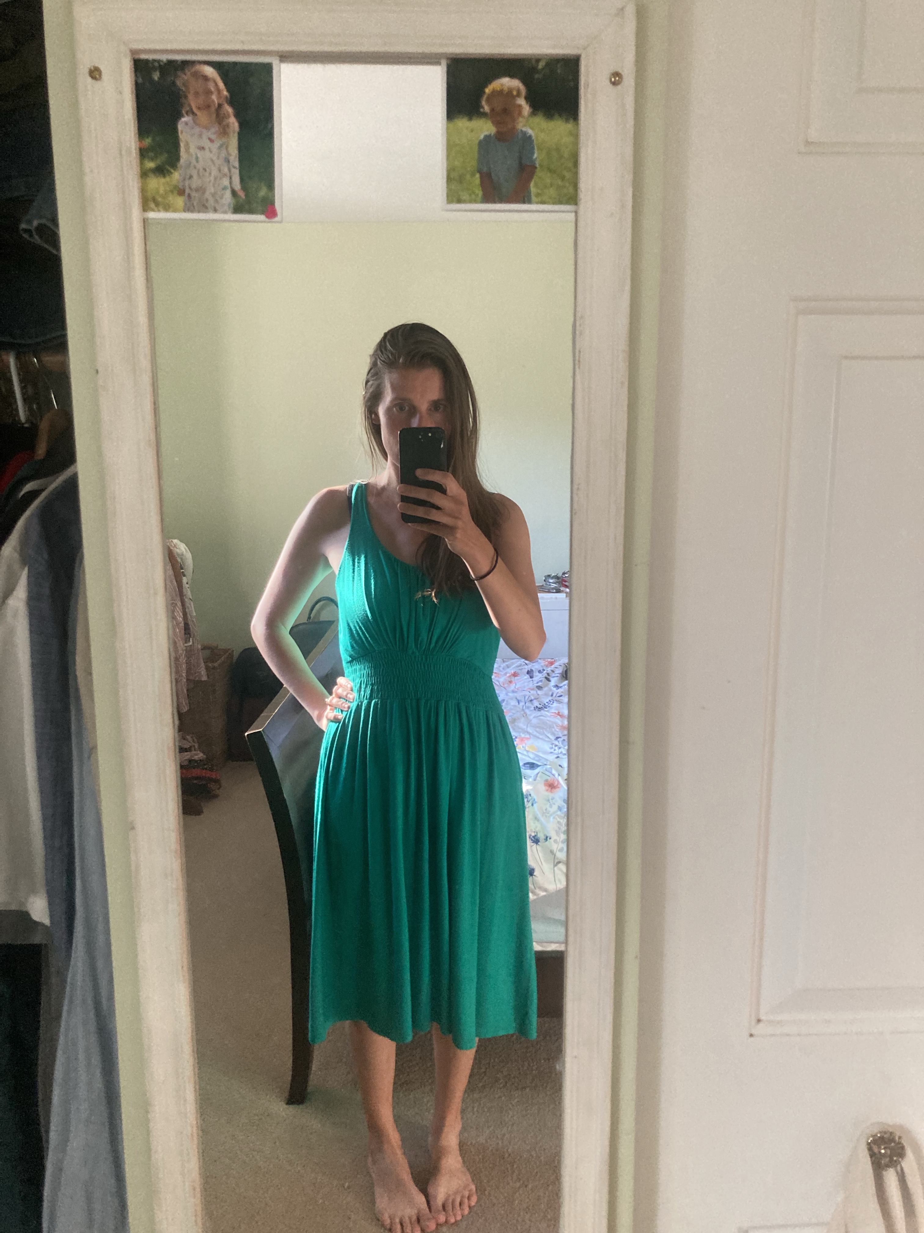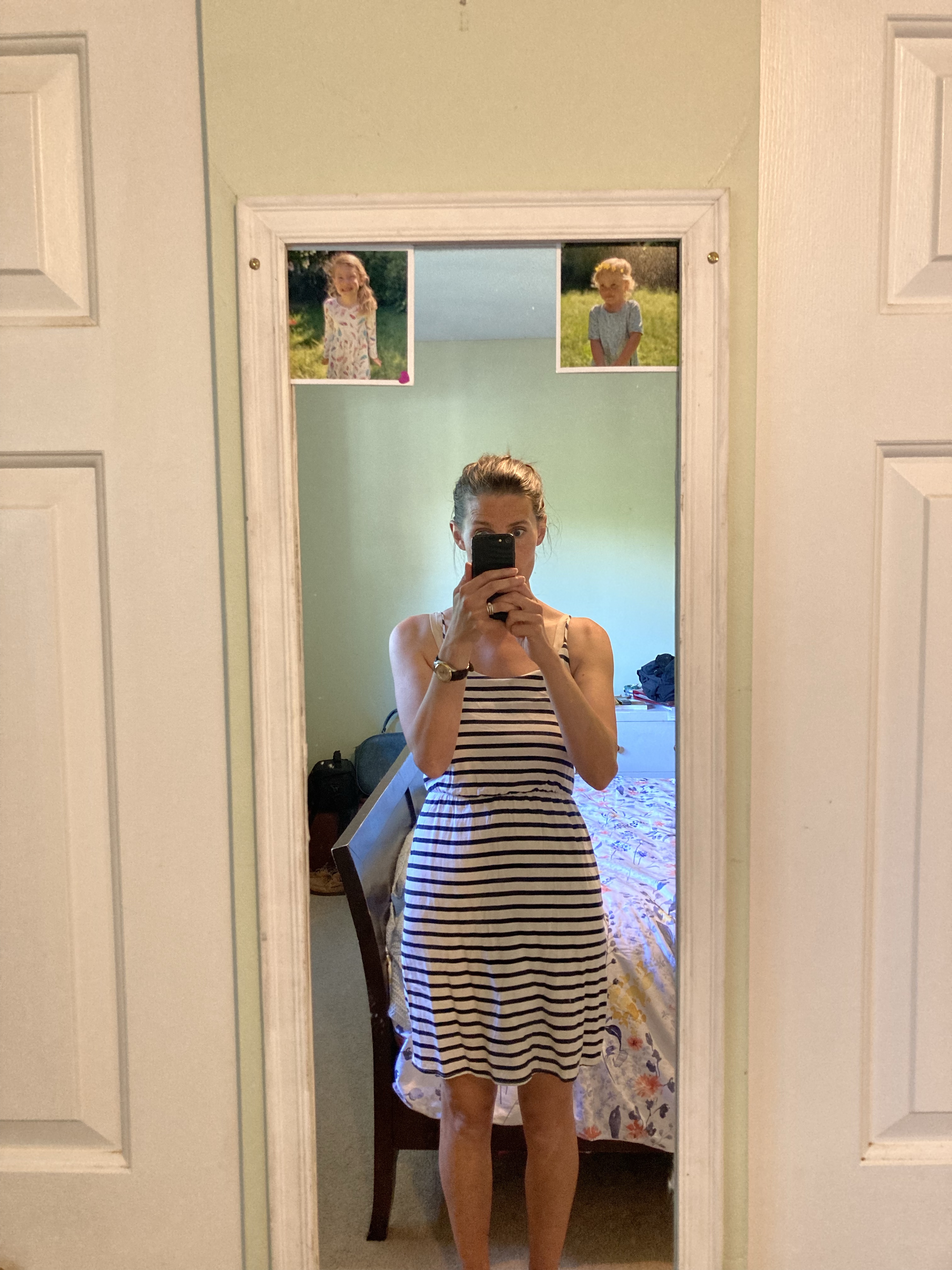 3. Girl, I’m just going to say it: that greenish stripey dress looks hot on you!