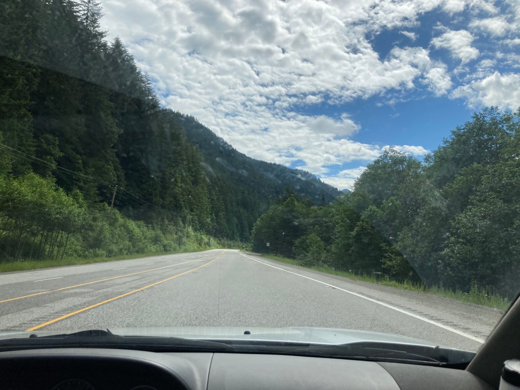 This was a shorter day of driving so we took it a bit slower and it took us most of the day to reach our destination. This also happened to be the day of the Great Rogers Outage, which made it trickier to stay in touch in our caravan. For most of the day, we just thought we all had terrible service in the mountains. My brother-in-law came up with a good strategy for stopping at the same places. Once we knew what town we were going to stop in next we would meet at the first gas station after the artistic “Welcome to [insert town’s name]” sign.