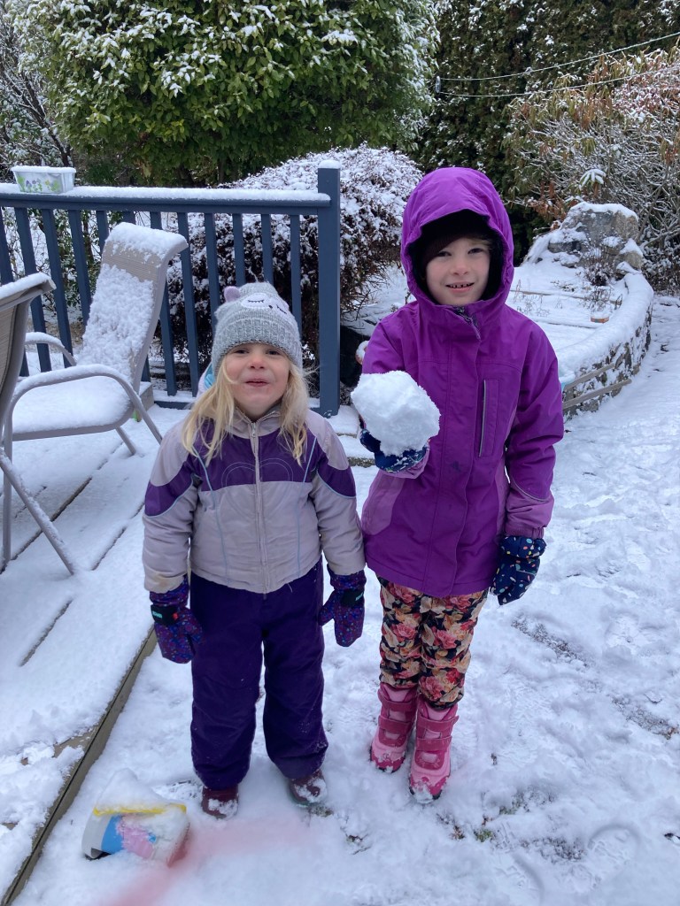 Speaking of ice, we had the first Snow Day of the school year. Well, a half snow day. Our school district is pretty spread out and the weather can vary hugely from one neighbourhood to the next. Lots of kids take the school bus and plenty of families live in rural areas with roads that are hard to drive on in bad weather. This means it can be difficulty for the school district to know when to call a snow day. And sometimes we get a snow day when there isn’t actually that much snow in our area. This time they tried something new by calling a delayed start to the school day. We had an extra hour and half in the morning and for our family it was pretty great. The kids had time to play outside in the fresh snow. They came in, warmed up with hot chocolate, and then had a fun afternoon at school. (The 3rd picture below is a snow cat made by Pearl.)