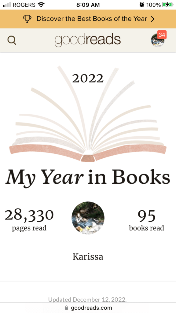 That’s a great year, and good job using the library! I’m glad you discovered audiobooks too, I did within the past couple of years as well and it’s been so fun, and helped me read a lot more too without taking time away from other things. Congrats on meeting your goals!