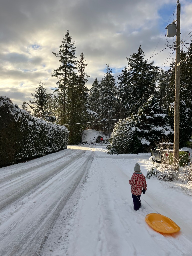 While this didn’t necessarily help me at work (a lot of our expected deliveries were delayed), it made for the perfect week for Peter, Pearl, and Rose to be cozy at home. They went sledding, played in our yard, and spent days in their pyjamas. They were all very relaxed!