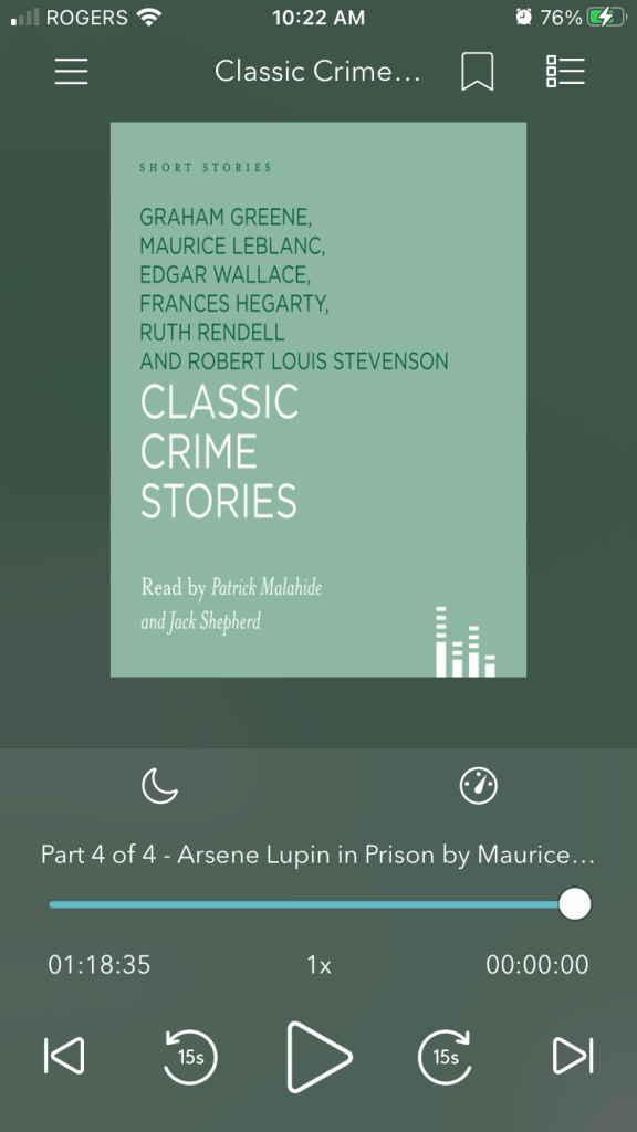 This was an excellent collection of 10 short crime stories. There were mostly names I recognized, such as Ruth Rendell and Grahame Greene and G.K. Chesterton and others that I probably would recognize if I read more mysteries. I’m not sure that audio is the right format for me when it comes to short stories as I like to take a little more time between stories to ready myself for the next one but that’s not the fault of the book.