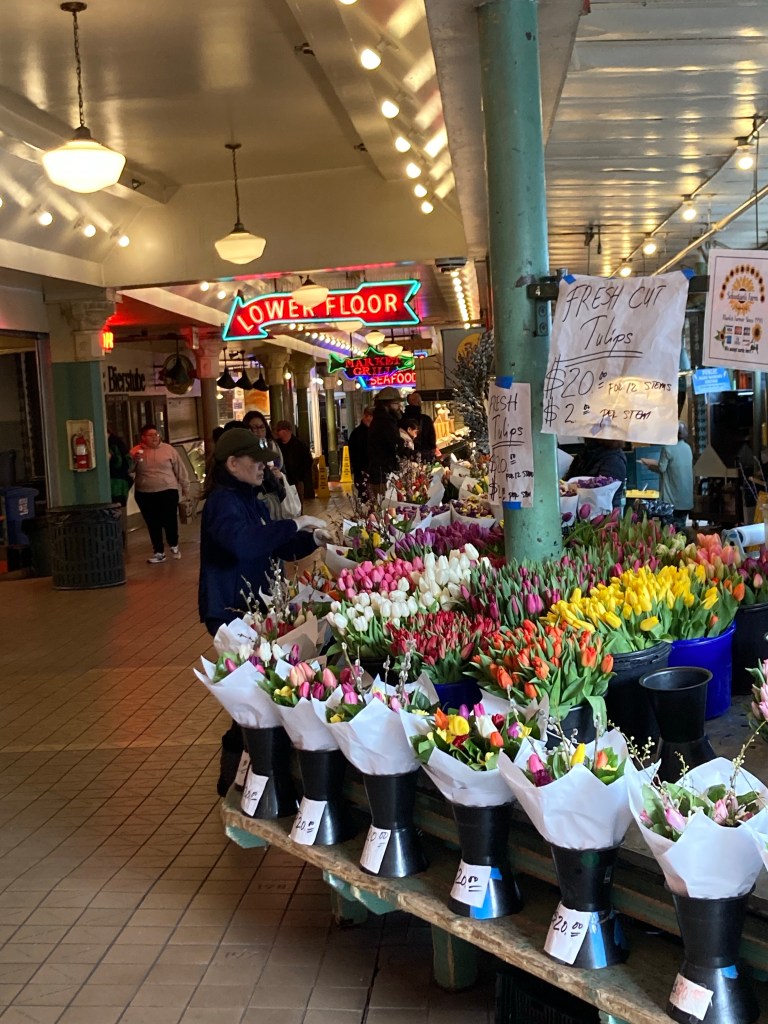 The next morning (Tuesday), after breakfast in our hotel room, we walked over the Pike Place Market. This is a Seattle classic and we got there early enough that it was relatively quiet and fun to look around at the wide variety of stalls and shops.