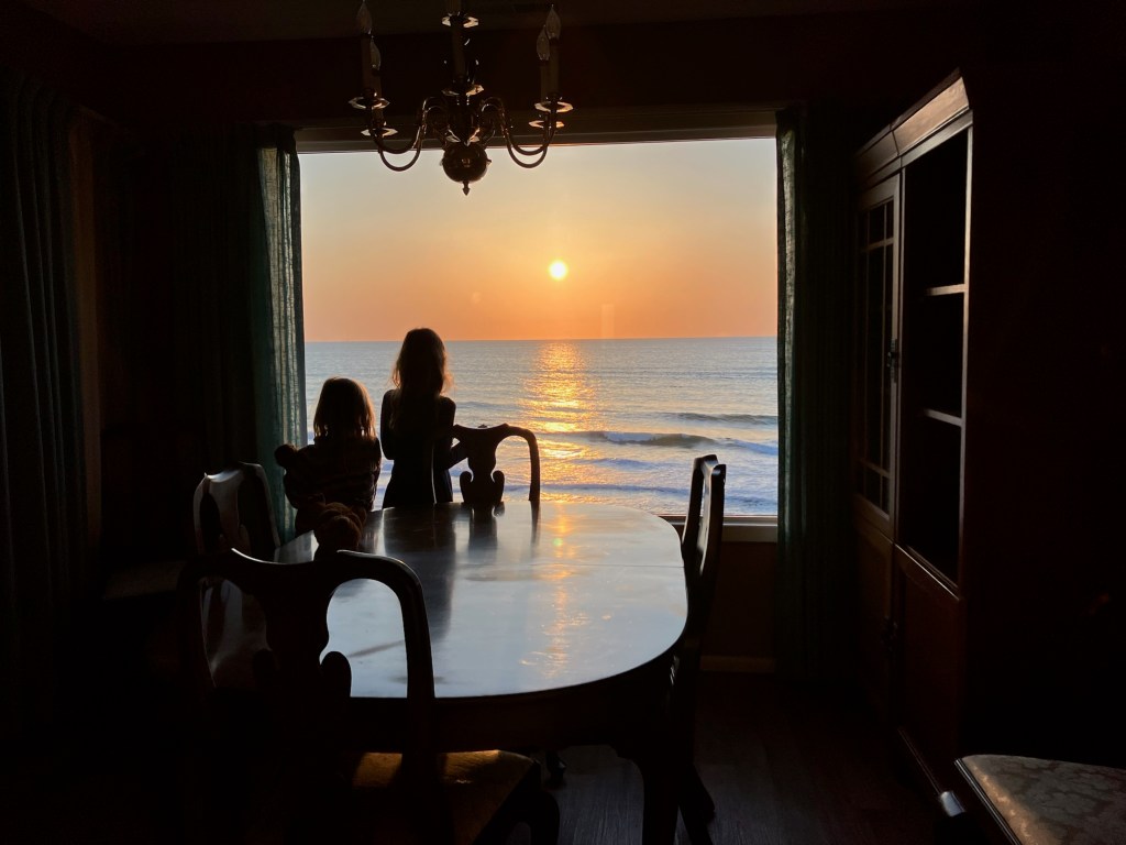We spent our afternoon back at the beach in front of the condo. My brave (or maybe foolish) family actually put their swimsuits on and played in the waves. I read on the beach and then we all swam in the building’s pool. (Much warmer)