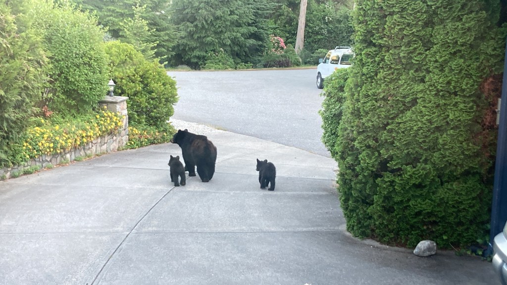 This mama and her cubs have been hanging out around our neighbourhood and this was actually the second time I’ve seen them. This is a photo of our driveway, taken from our kitchen window.