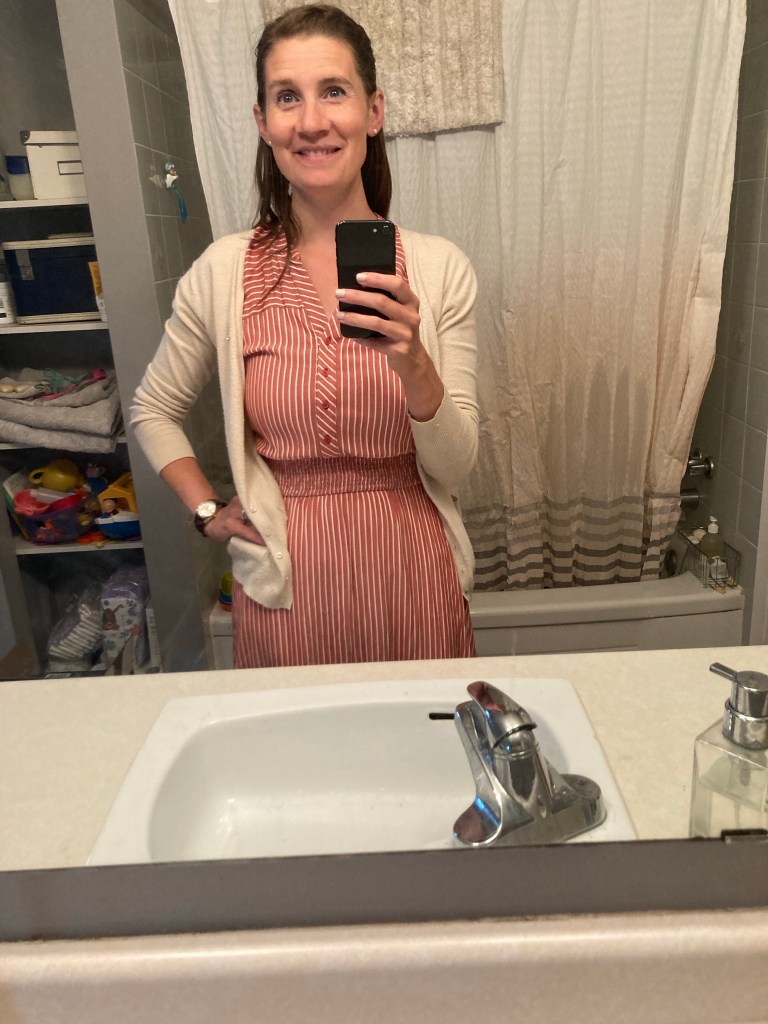 Keen observers will notice that there are two days there where I’m not wearing a dress and one day where I didn’t even take a picture. (I didn’t even wear a dress that day either.) It’s been cooler this past week with some rainy days. I kind of regretted my bare legs on Wednesday and then on Friday I knew I’d be out on a field trip most of the day and it would be raining. On Saturday I wore a dress but I’m also wearing leggings. I’m 37 years old and comfort is important to me!