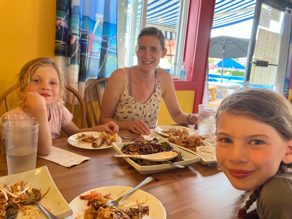 We enjoyed the luxuries of flush toilets, ice cream across the street, and going to a restaurant for dinner!